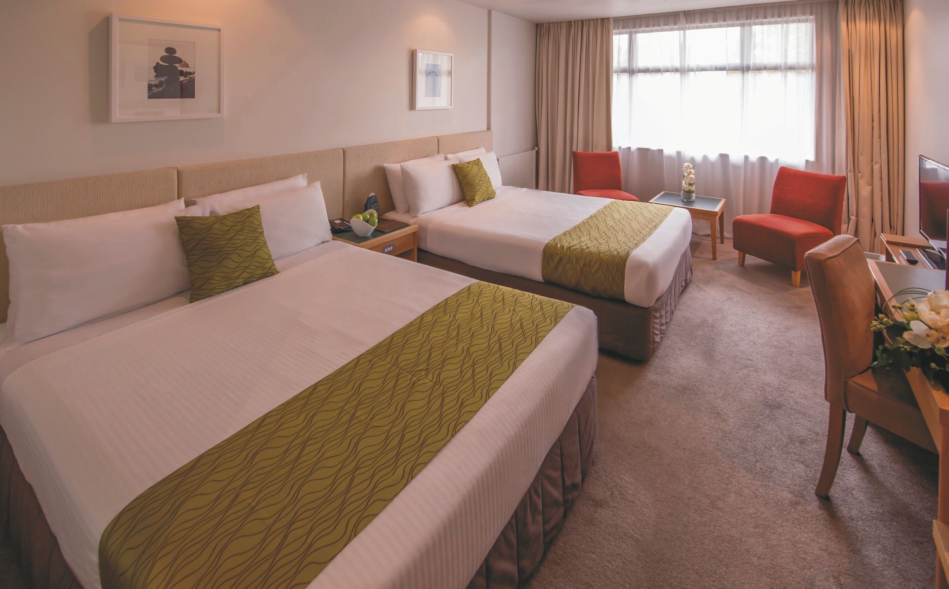 Die Zimmer verfügen über Klimaanlage, DU/WC, Fön, TV, Video, Telefon, Minibar und Tee-/Kaffeezubereiter.