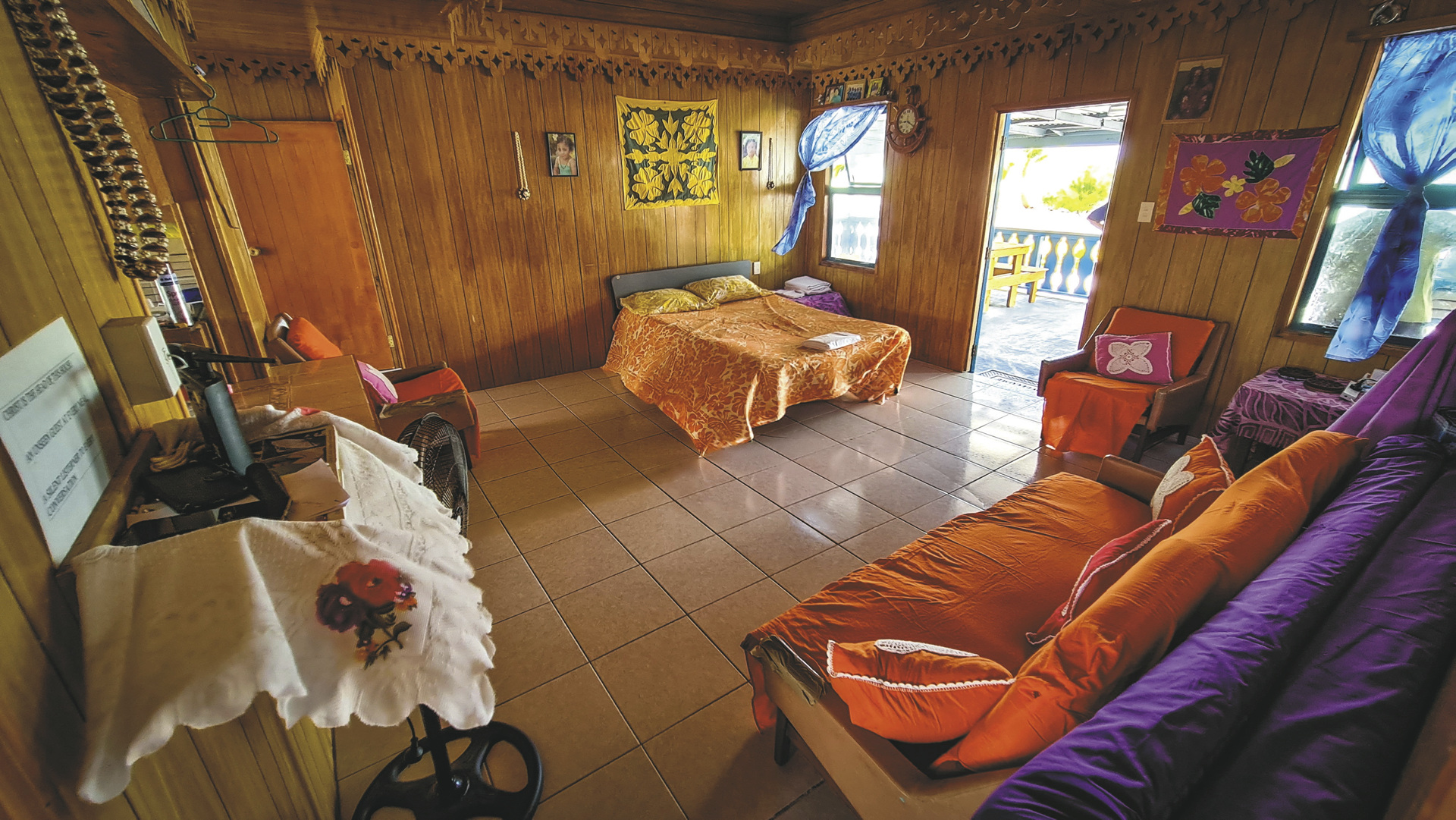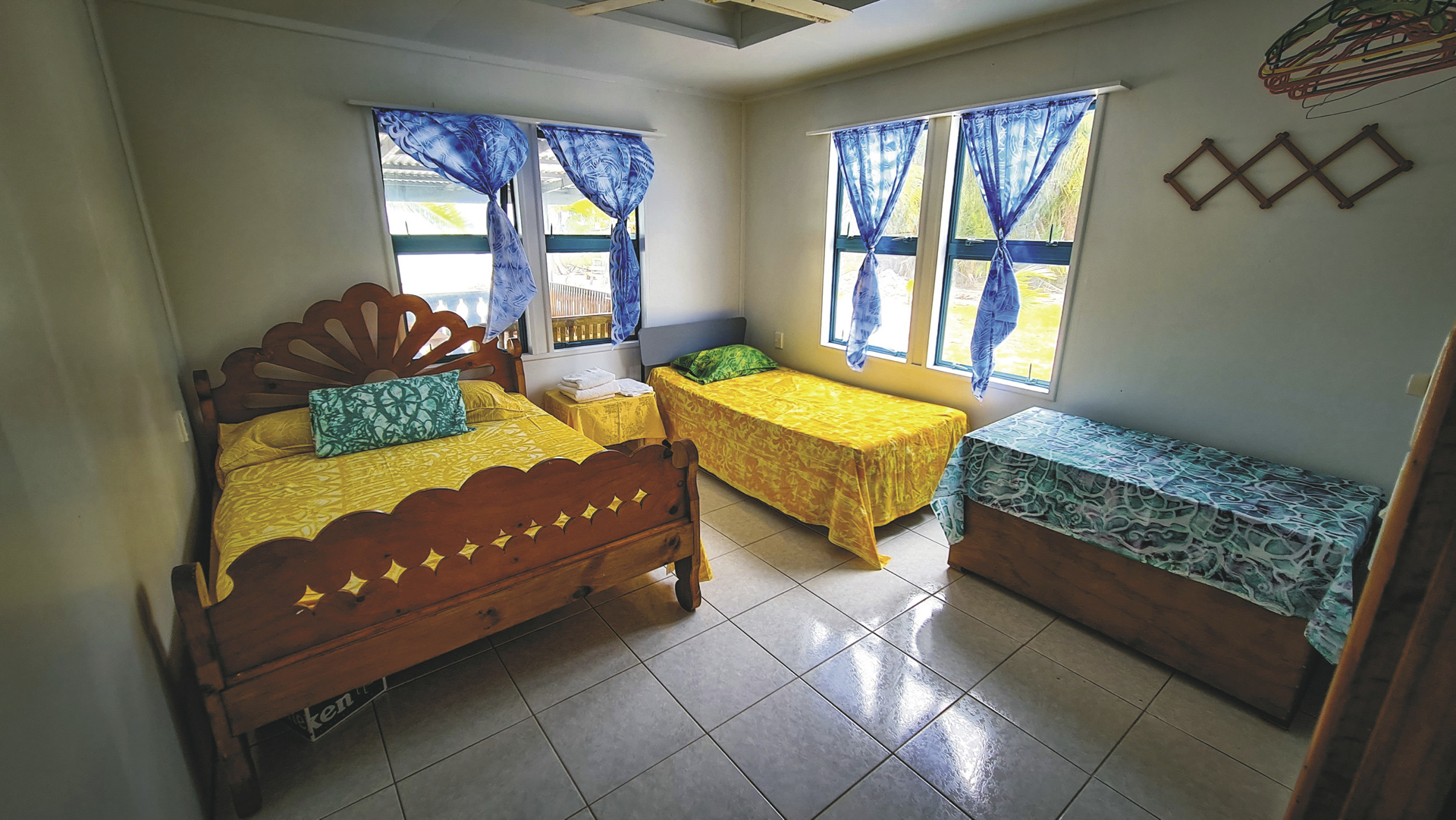 Die Unterkunft ist sehr einfach, aber sauber und wird von der Inselverwaltung zur Verfügung gestellt. Das Haus hat drei Schlafzimmer mit je zwei Einzelbetten. Zu den Einrichtungen gehören eine Gemeinschaftsküche, ein Aufenthaltsraum und ein Essbereich auf der Veranda sowie jeweils zwei Bäder.