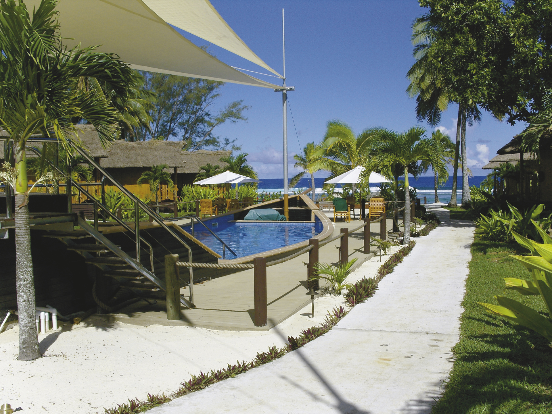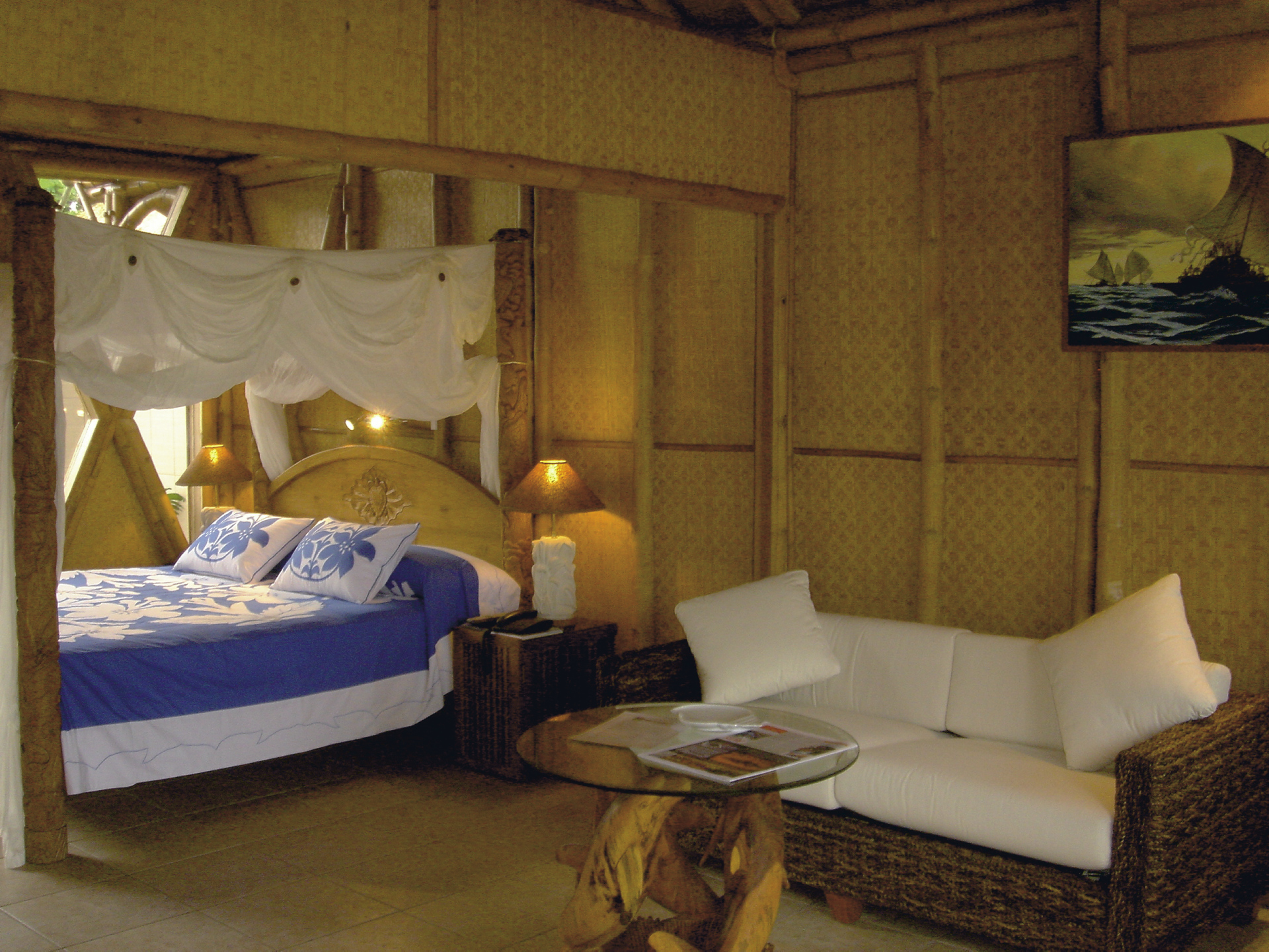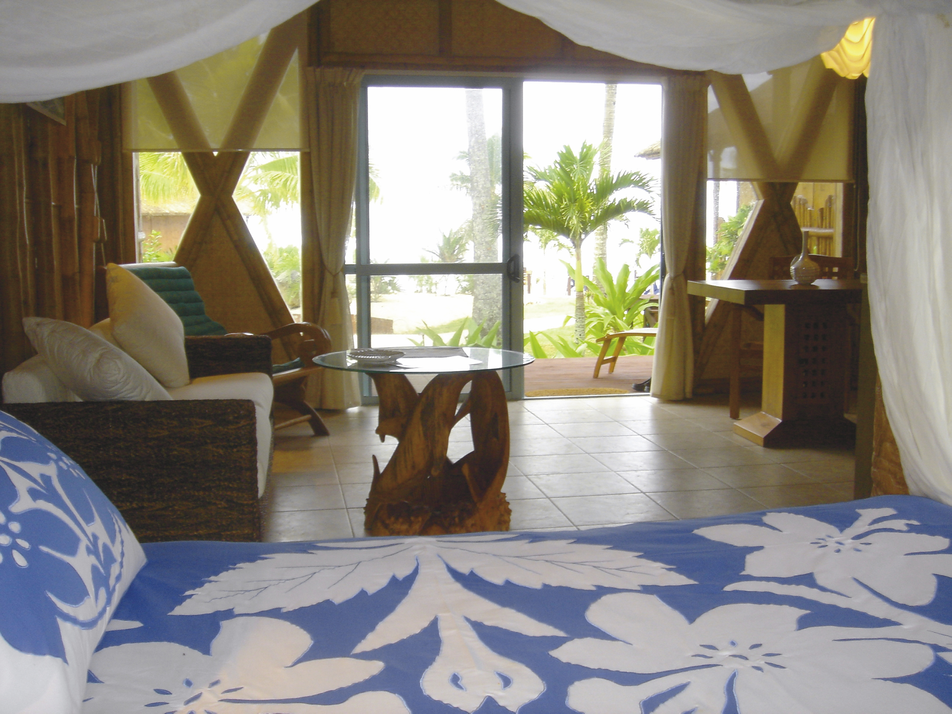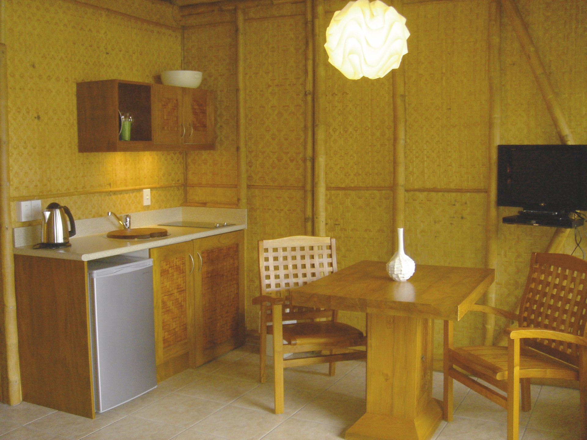 Alle Bungalows sind klimatisiert und polynesisch eingerichtet mit Küchenzeile und Kühlschrank, TV/DVD, Safe, möblierter Terrasse mit Blick auf die Lagune und einer privaten Außendusche. Premium Strandbungalow in bester Lage.