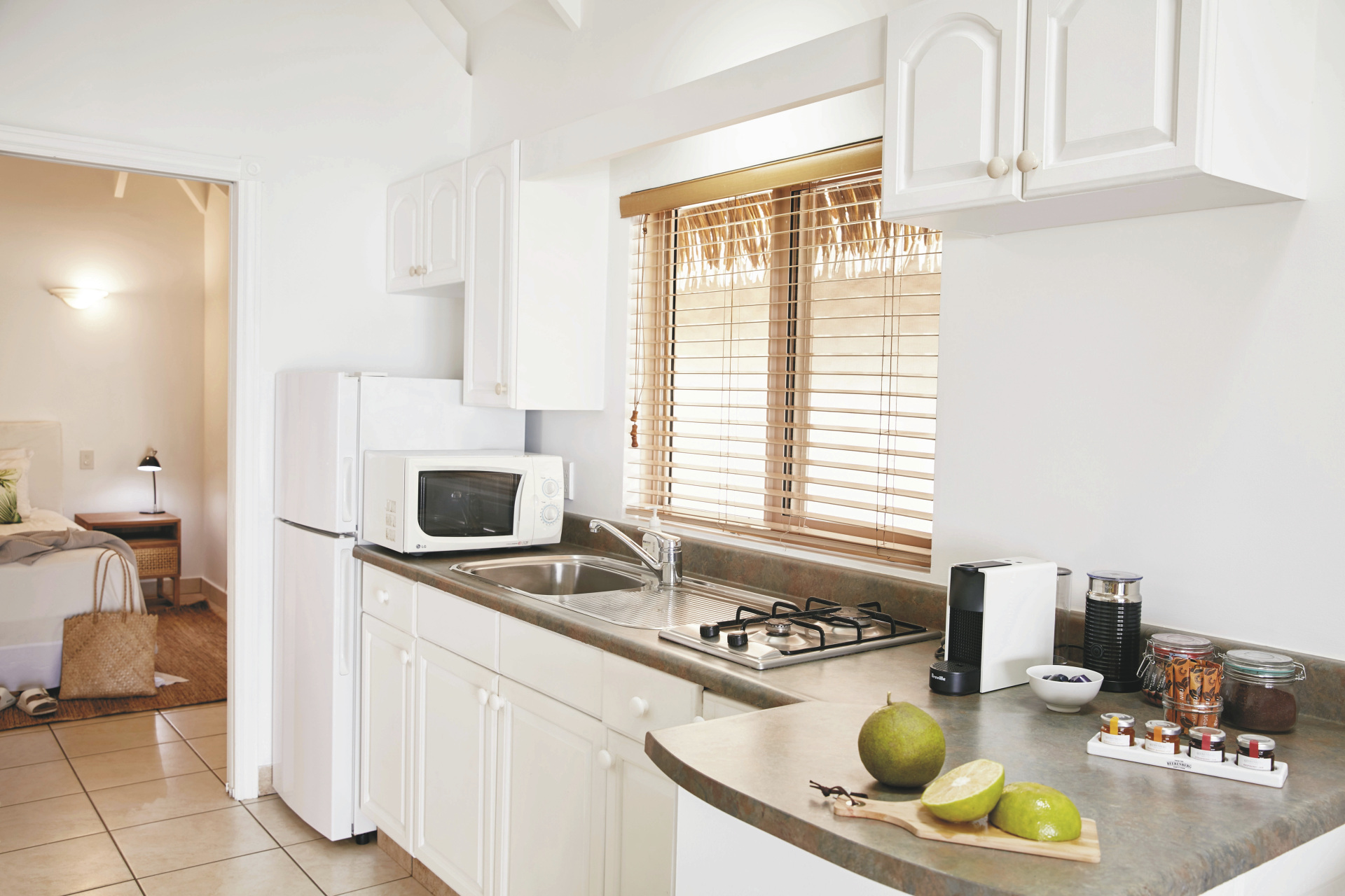 10 Bungalows mit überdachter Terrasse, Schlafzimmer mit Klimaanlage, Wohnzimmer und geräumigem Bad mit Badewanne, Fön, kompletter Küche, Telefon, TV, Radio, iPod-Dock, Safe. Garten- und Strandvillen werden angeboten. Die Premium-Strandvillen bieten mehr Privatsphäre und sind etwas geräumiger.