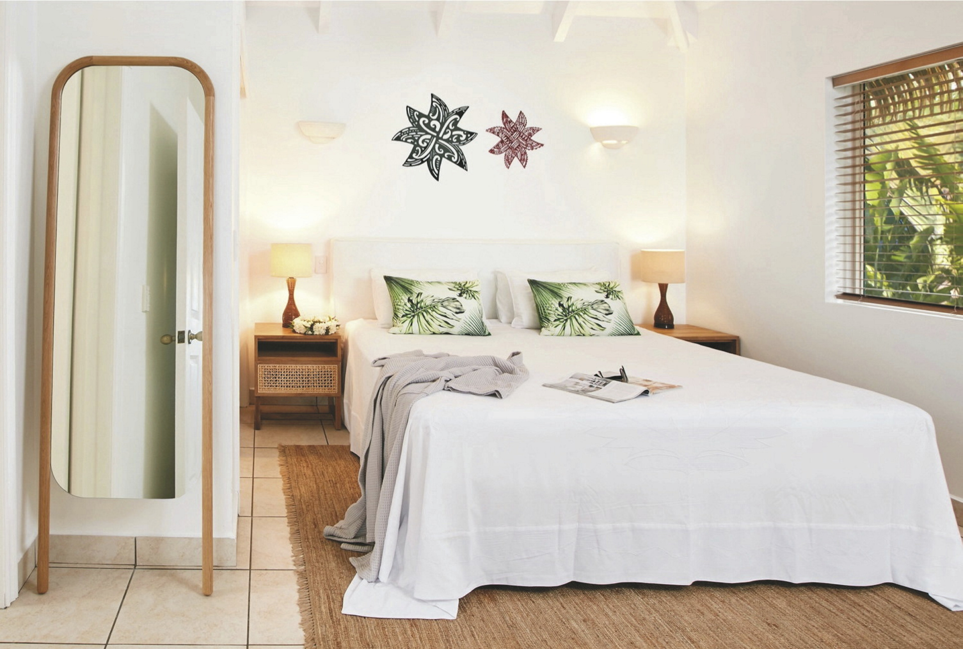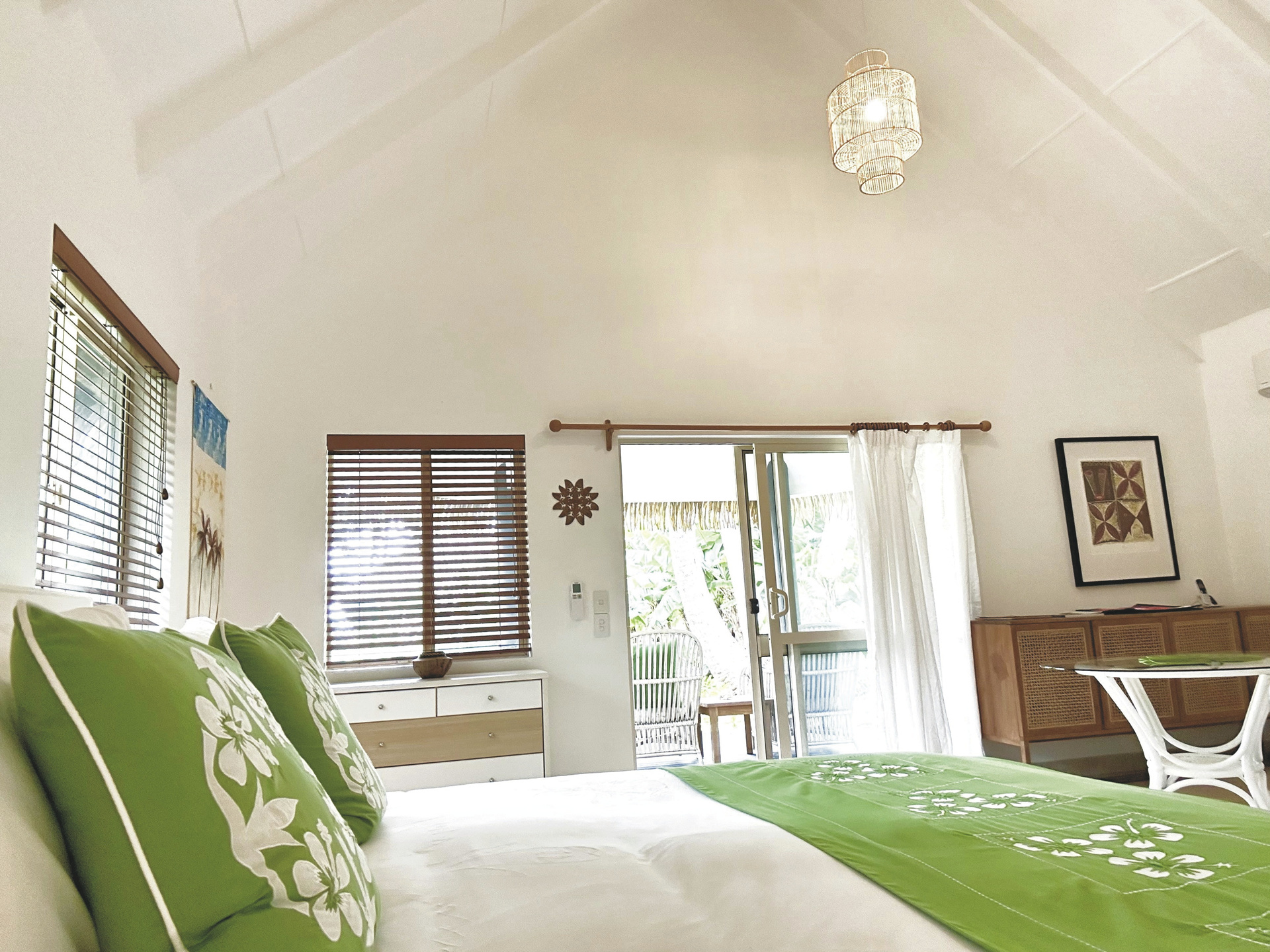 Unser Tipp: Motu Beachfront Art Villas am einsamen Palmenstrand in ruhiger Lage direkt am Meeresschutzgebiet mit traumhaften Schnorchelgründen.