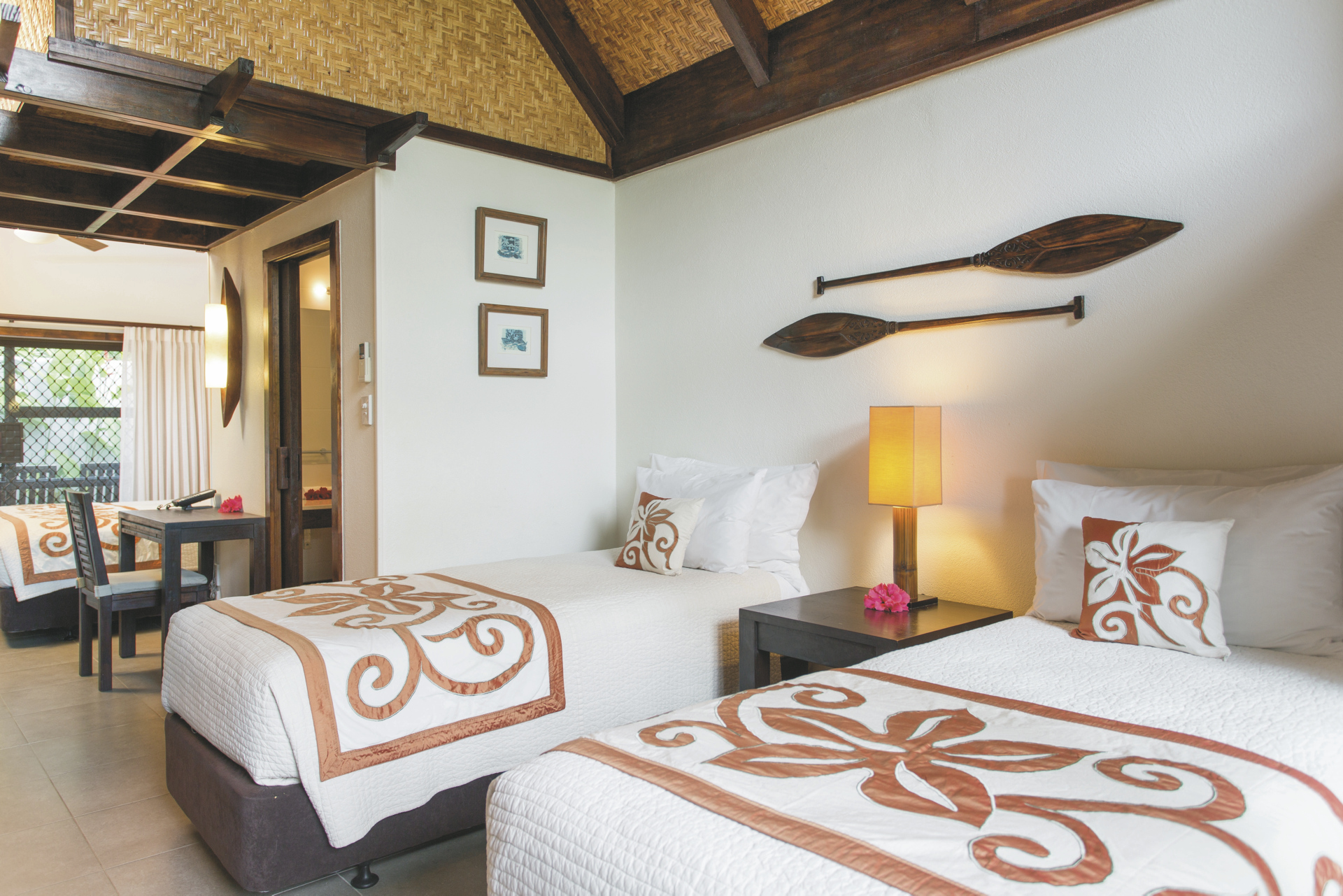 64 moderne Zimmer und Villen mit pazifischem Flair, verteilt in der großzügigen Anlage, mit Klimaanlage und Ventilator, TV/DVD, Telefon, Safe, Fön, Kühlschrank, Tee-/Kaffeezubereiter. Alle Zimmer bestehen aus einem geräumigen Wohn-/Schlafzimmer mit Balkon oder Terrasse. Es gibt Studios ohne TV für Preisbewusste. 2- und 3-Schlafzimmer-Villen verfügen über komplette Küche und sind besonders für Familien geeignet.