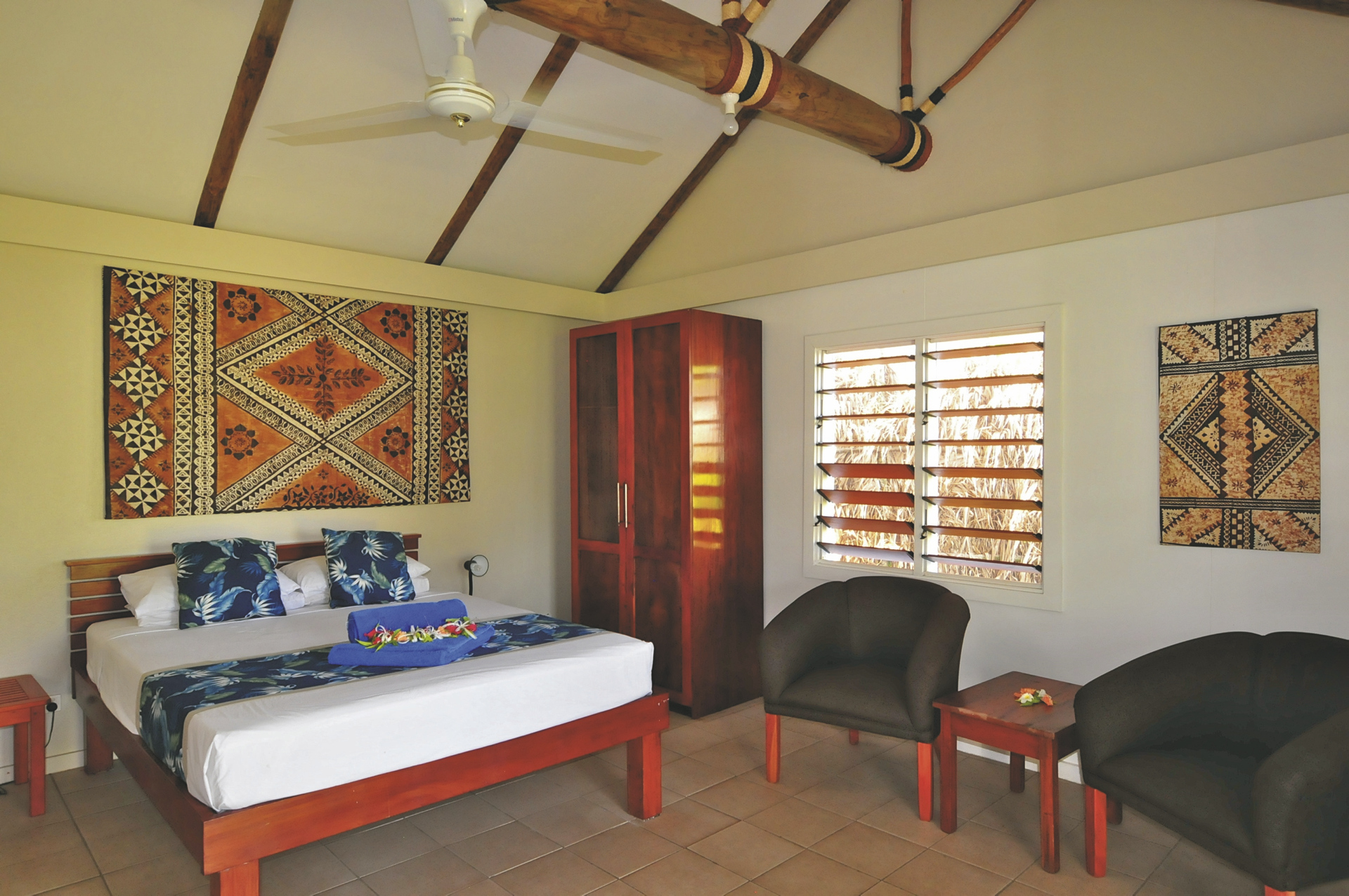Die mehrfach ausgezeichnete Bungalow-Anlage ist geprägt von der fijianischen Kultur, der Natur und den stets freundlichen Einheimischen. Das Lagoon Restaurant & Bar steht als gemeinschaftlicher, offener Speiseraum zur Verfügung , wobei auch Privatsphäre respektiert wird. Abwechslungsreiche Küche mit ausschließlich frischen und leichten Zutaten, sorgt für Gaumenfreuden. Freitag Abend ist Meke-Abend begleitet von der lokalen Boy-Band. Im Green Gecko Kids-Club sind die Kleinen unter sich und in guter Obhut. Tagesbetten entlang der Lagune und am Pool bieten Entspannung. Die aktiven Gäste können kostenlos wandern, schnorcheln oder paddle-boarden. Tauchen, Angeln und Dorfbesuche werden kostenpflichtig angeboten. Wifi ist kostenlos.