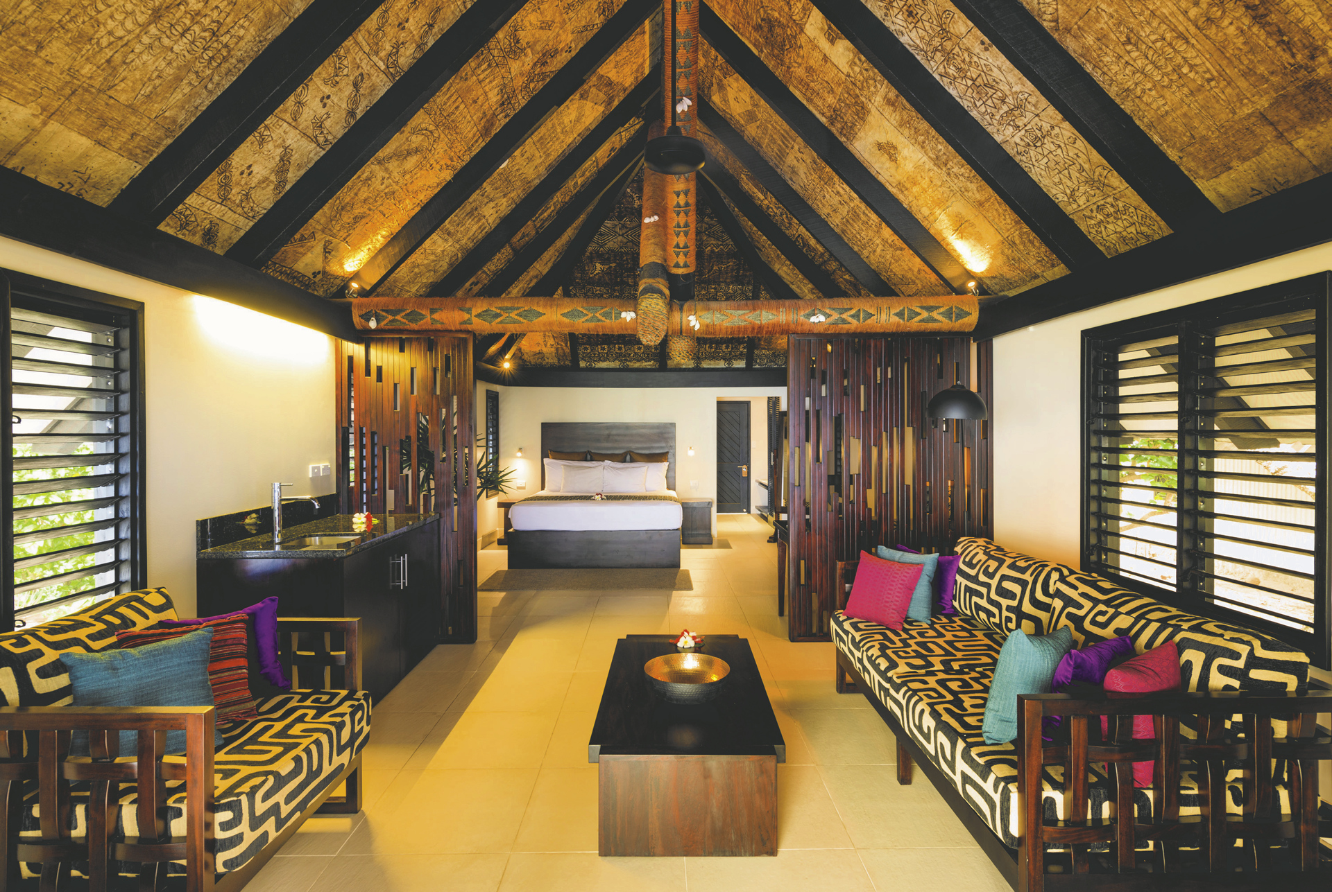 Gartenzimmer, Strandbungalow und Villen sind klimatisiert und verfügen über Ventilator, Kühlschrank, Tee-/Kaffeezubereiter, Safe sowie Terrasse. Die sehr geräumigen Strandbungalows mit hohen, spitz zulaufenden Decken, geschmückt mit Tapa und Magi Magi, bieten zusätzlich Hängematte und Pool. Die modern eingerichteten Strandvillen haben getrennte Wohn- und Schlafzimmer sowie Terrasse mit Jacuzzi und Tagesbett, außerdem zusätzlich Außendusche und MP3-Dock.
