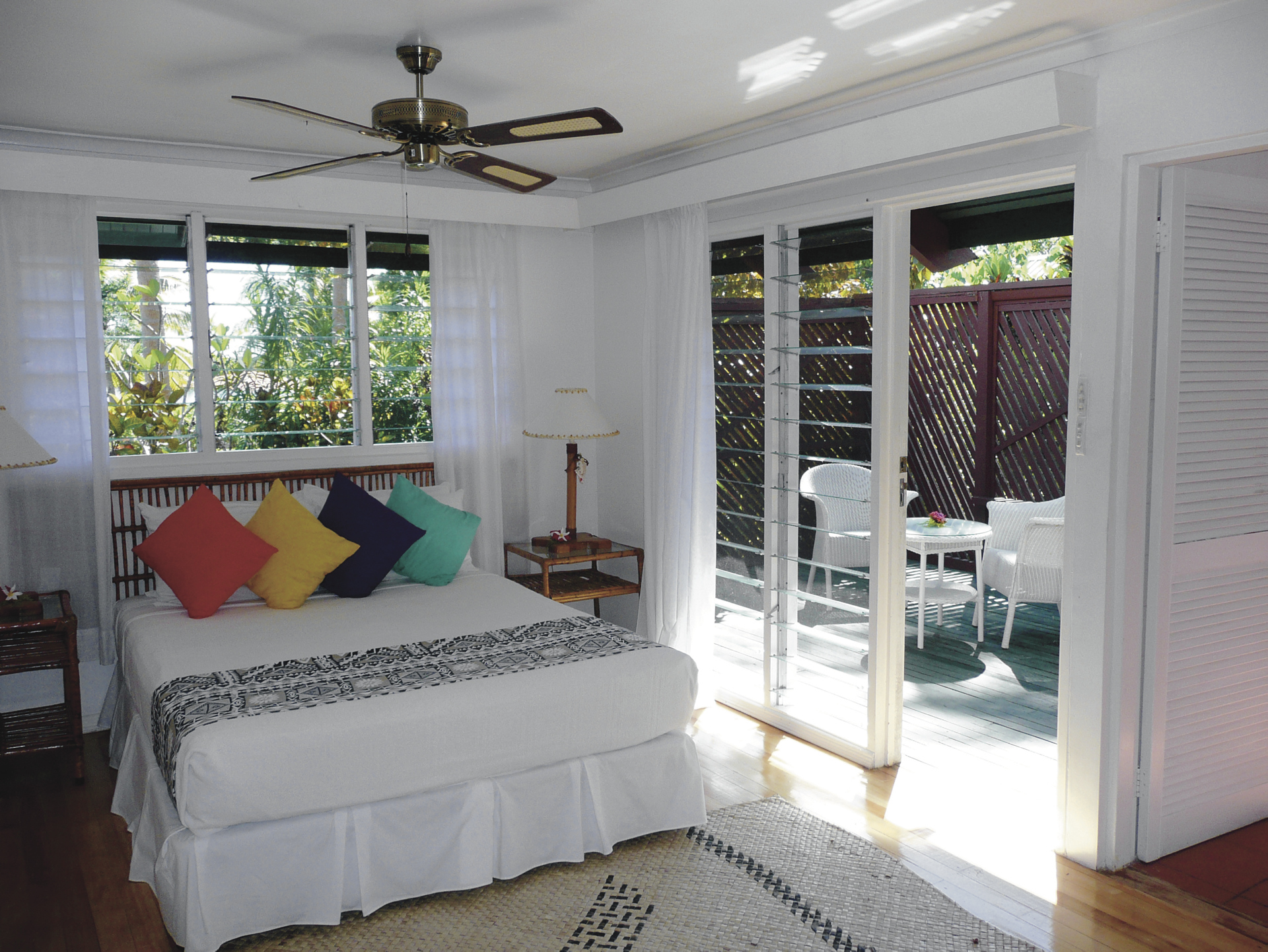 4 Duplex-Suiten, 3 freistehende Bungalows bieten Veranda mit Blick auf den Ozean und Sonnenuntergang. Sie sind großzügig , komfortabel, durch die Lamellen-Jalousien kühlt die Meeresbrise.