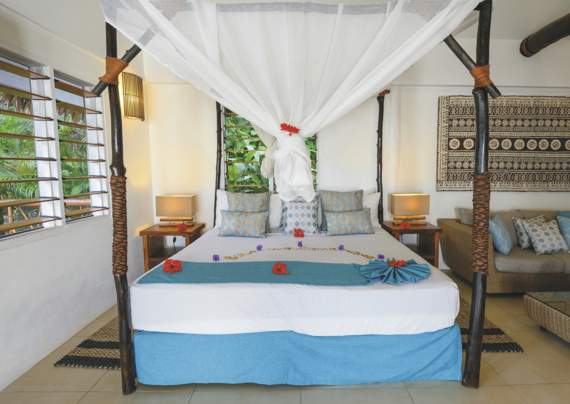 16 traditionelle, freistehende Bungalows, teilweise mit eigenem kleinen Pool bieten Platz für bis zu 3 Personen. Die 7 neuen, modernen Suite sind nur für Paare konzipiert, wie auch die Deluxe Pool Bure. Sie sind klimatisiert und verfügen über Ventilator, kleinen Kühlschrank, Tee-/Kaffeezubereiter, Safe, Bügeleisen, Fön und Außendusche. Die Suiten liegen am Hang und überblicken die Anlage. Neben einem großzügig Wohn-/Schlafraum gibt es eine Terrasse mit privatem kleinen Pool.