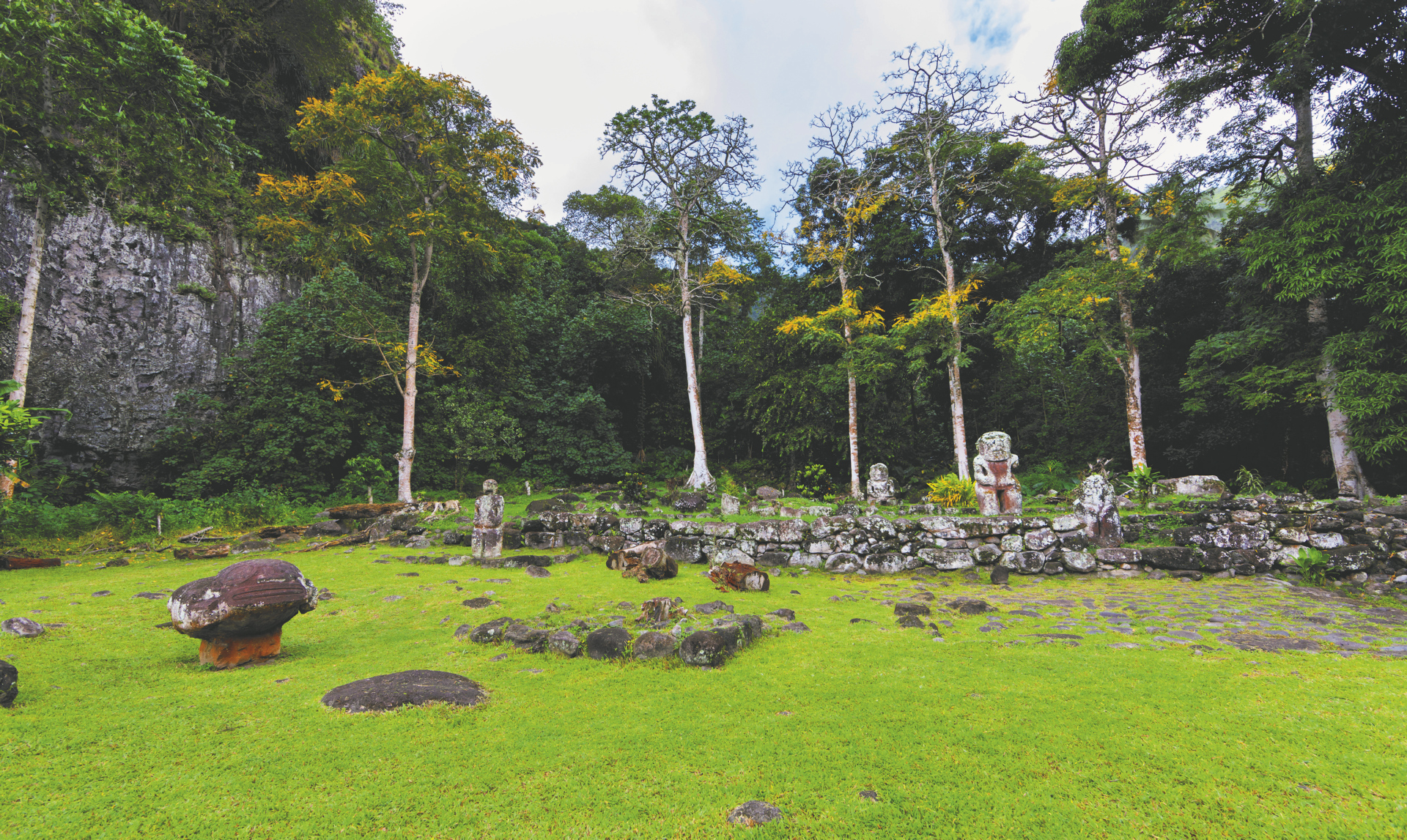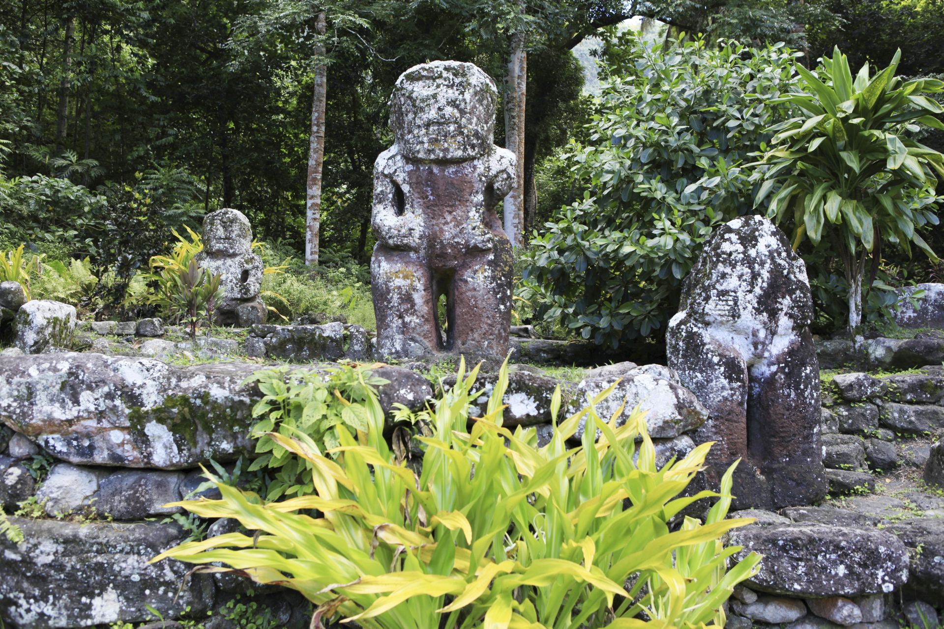 Ankunft in Atuona auf der Insel Hiva Oa. Mit dem Geländewagen fahren Sie morgens nach Puamau, um mit Mea’e Iipona die wichtigste archäologische Stätte der Region mit ihren uralten, menschenähnlichen Steinfiguren (Tiki) anzuschauen. Unsere Guides werden Sie durch die mysteriösen Ruinen von Puamau führen und Ihnen die Geschichten der sagenumwobenen Statuen und einer vergangenen Zivilisation erzählen. Zurück in Atuona werden Sie bei einem Spaziergang auf den Hügel, auf