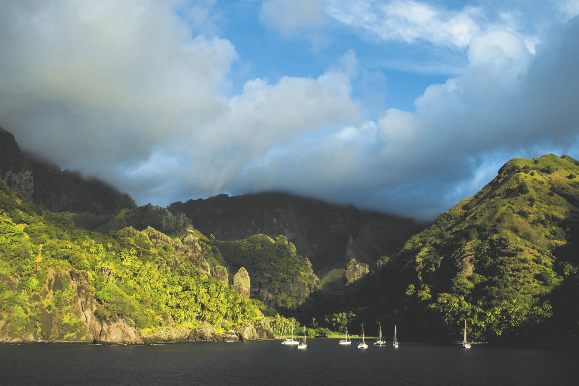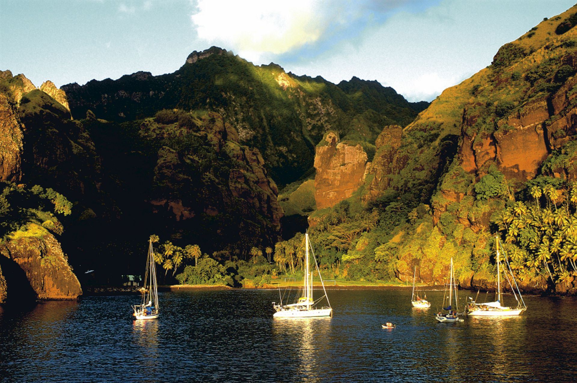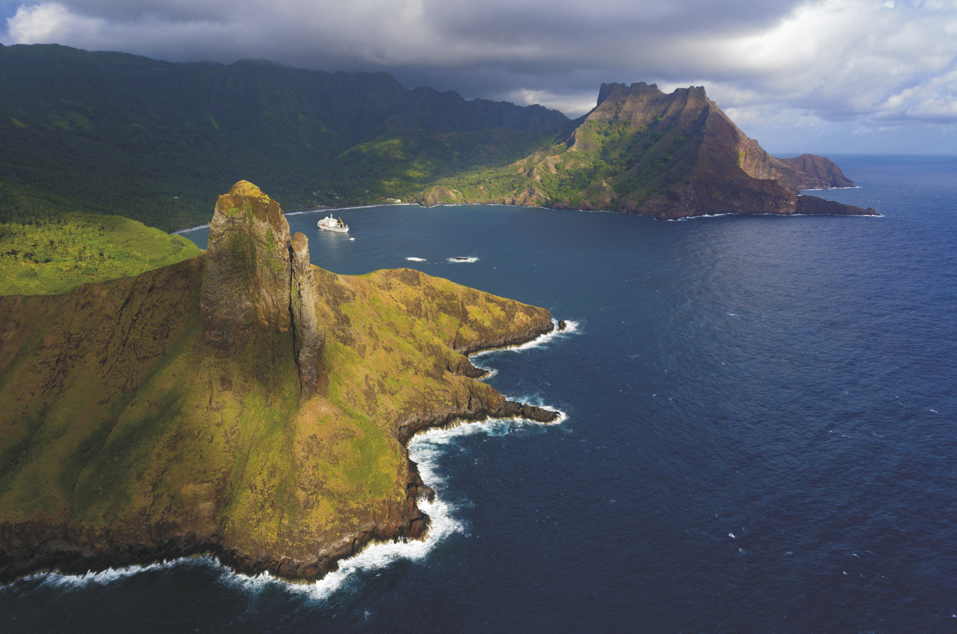 Insel Fatu Hiva (F/M/A).Die Aranui ankert vor Omoa. Fatu Hiva ist die grünste und entlegenste Insel der Marquesas. Fatu Hiva ist berühmt für handgemalte Pareus (Wickeltücher), das Monoi-Öl und Tapa (Stoffe aus Baumrinde). Sportliche Passagiere können an einer einzigartigen Wanderung über die Insel zur Jungfrauenbucht teilnehmen. 16 km, die die Mühe lohnen! Sonnenuntergang in der Hanavave bzw. Jungfrauen-Bucht.