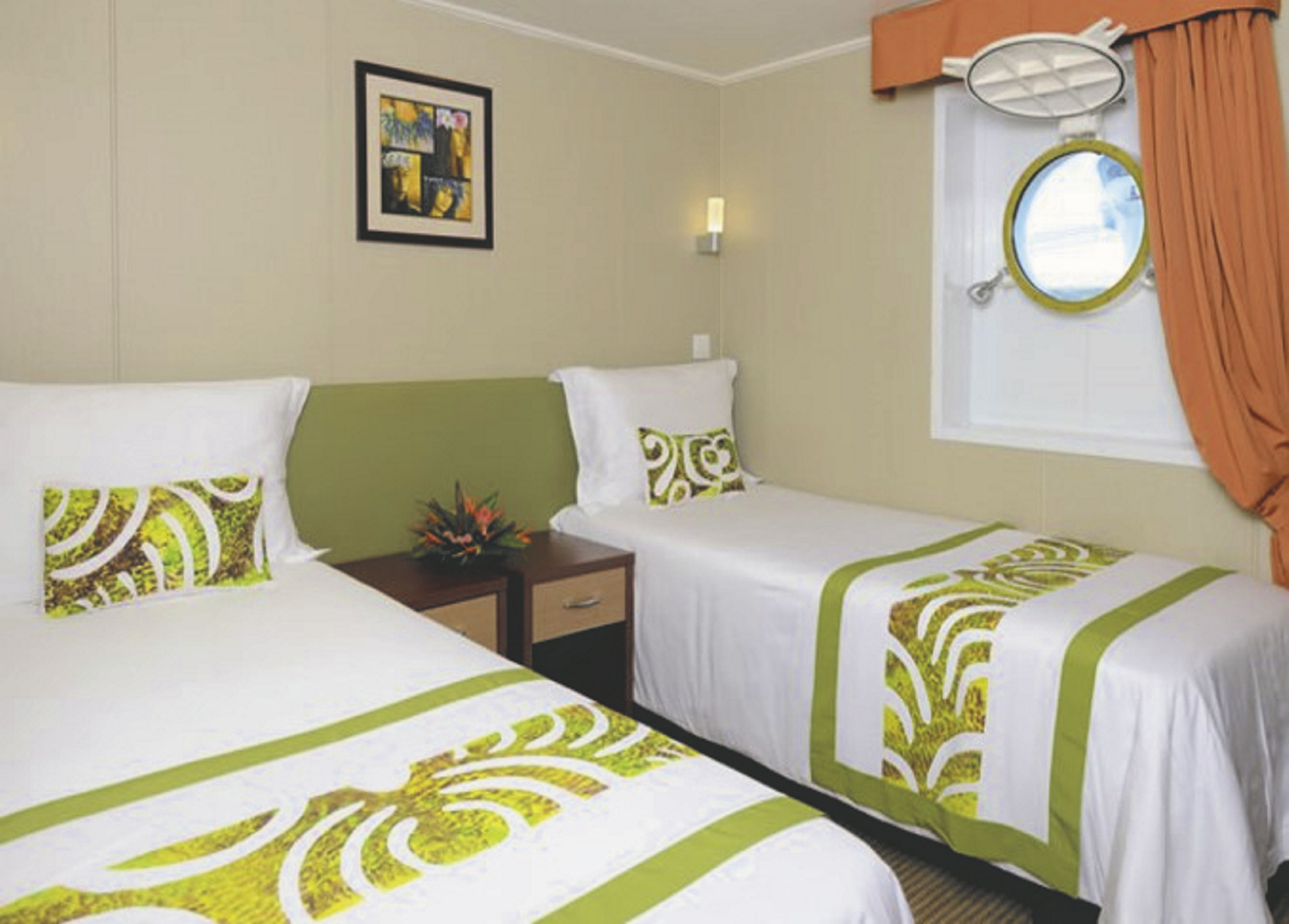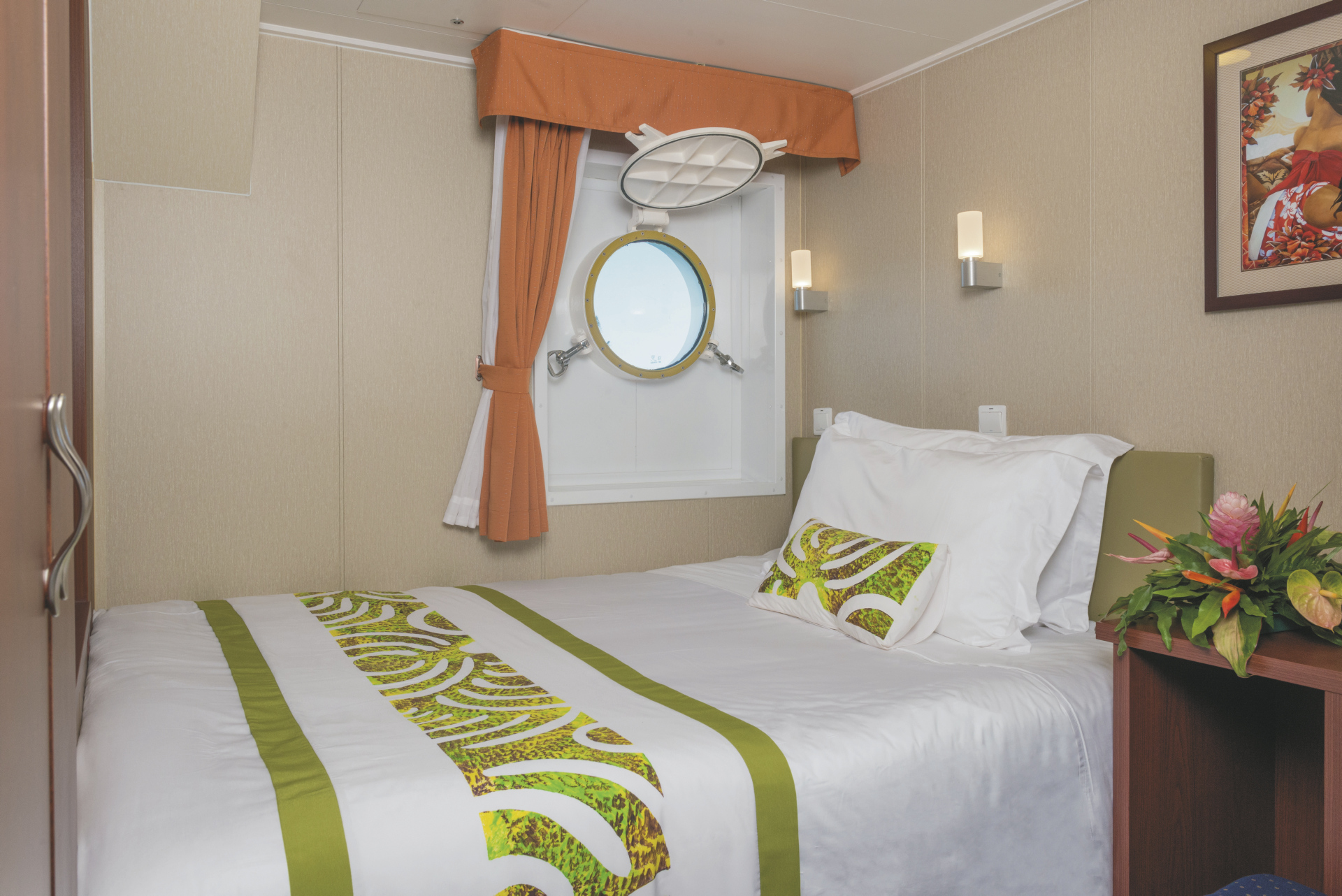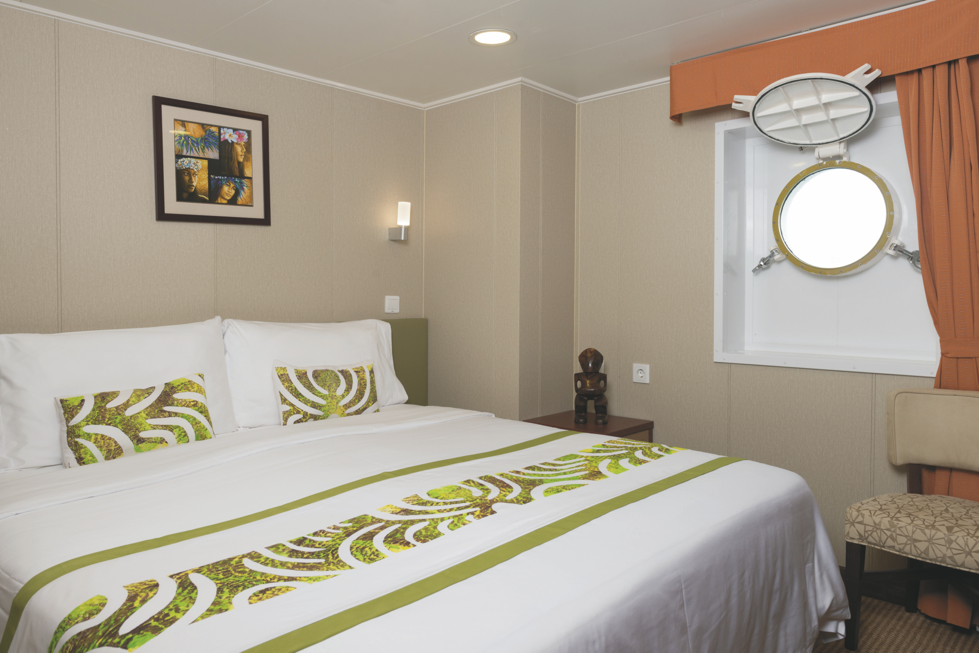 • Standardkabinen (40) auf den unteren Decks: Außenkabinen mit Bullauge für 2 Personen (11 m²), 1 Person (9,5 m²) und 4 Personen (16,5 m²)