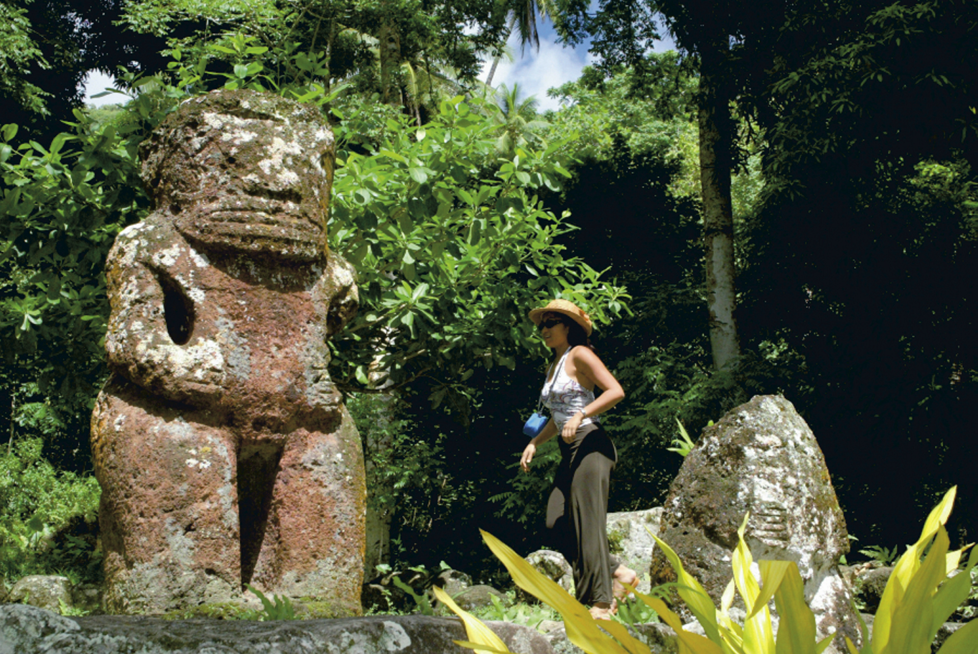 Hiva Oa (F/M/A).Mit dem Allradwagen fahren Sie heute kurvenreiche Pisten mit traumhafter Aussicht bis nach Puamau im Nordosten der Insel. Sie sehen den höchsten Tiki aus Stein in Te Lipona, der Takai genannt wird und ca. 2,40 m groß ist, und den ganz besonderen Makaii Taua Pepe, einen liegenden Tiki. Mittagessen enthalten. Nachmittag zur freien Verfügung in Te Lipona. Auf der Rückfahrt halten Sie noch beim Lächelnden Tiki, dem Ututka Tiki, der mitten im Regenwald von Punaei steht.