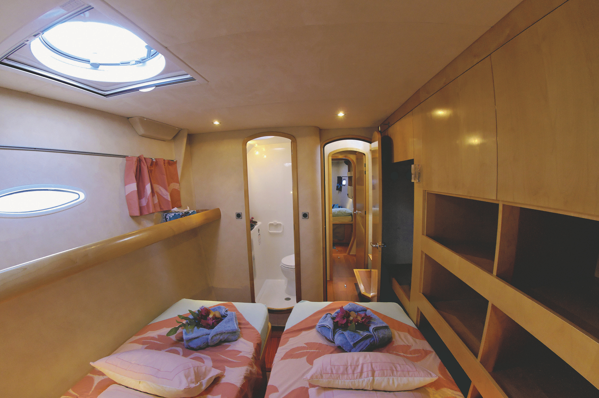Die luxuriöse Lagoon 620 ist 19 m lang. Sie verfügt über 6 Doppel- bzw. Zweibettkabinen mit eigenem Bad für max. 12 Passagiere und 2 Crew-Mitglieder. Das Design des Schiffs ist hell und modern. Der Salon mit Blick aufs Meer lädt zum Verweilen ein. Der Katamaran verfügt über eine Küche mit Generator sowie Wasseraufbereiter. Die Kabinen sind tagsüber (8.00-22.00 Uhr) klimatisiert. Auf dem Segler werden Geräte zum Schnorcheln und Kajak fahren mitgeführt. Die Mahlzeiten werden an Bord frisch zubereitet.