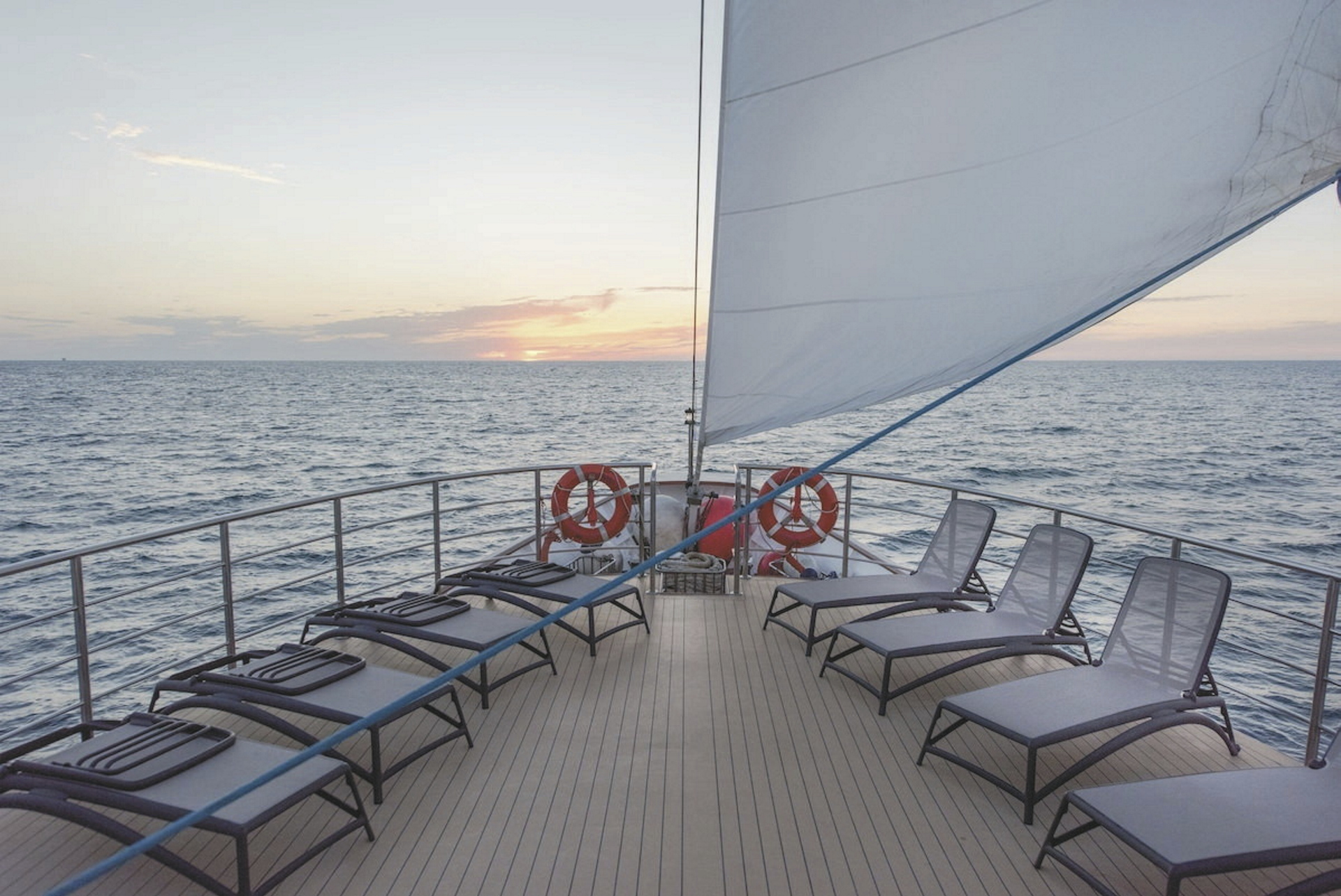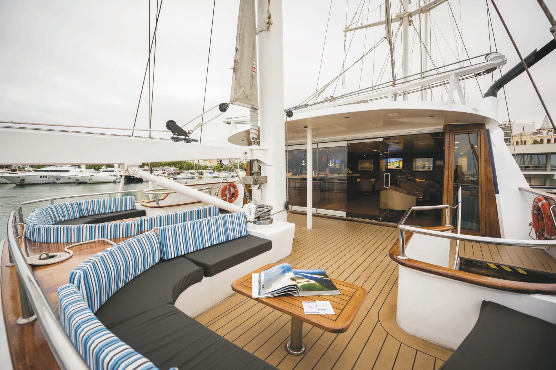Der Motorsegler Panorama II aus der Flotte Variety Cruises mit Sitz in Griechenland, ist 50m lang, segelt mit 10 Knoten, verfügt über 25 Kabinen, eine geräumige Lounge, Bar, Essbereich und Sonnedeck.