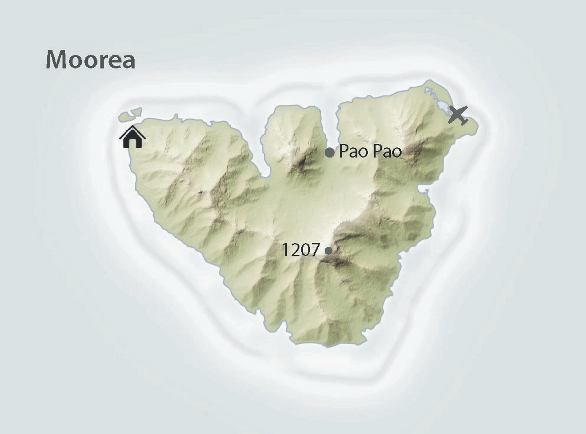 In der Cooks Bay, im Norden der Insel Moorea gelegen, mit Blick auf den Pacific und den Teavaroa Pass. Ca. 12 Autominuten vom Flughafen entfernt.