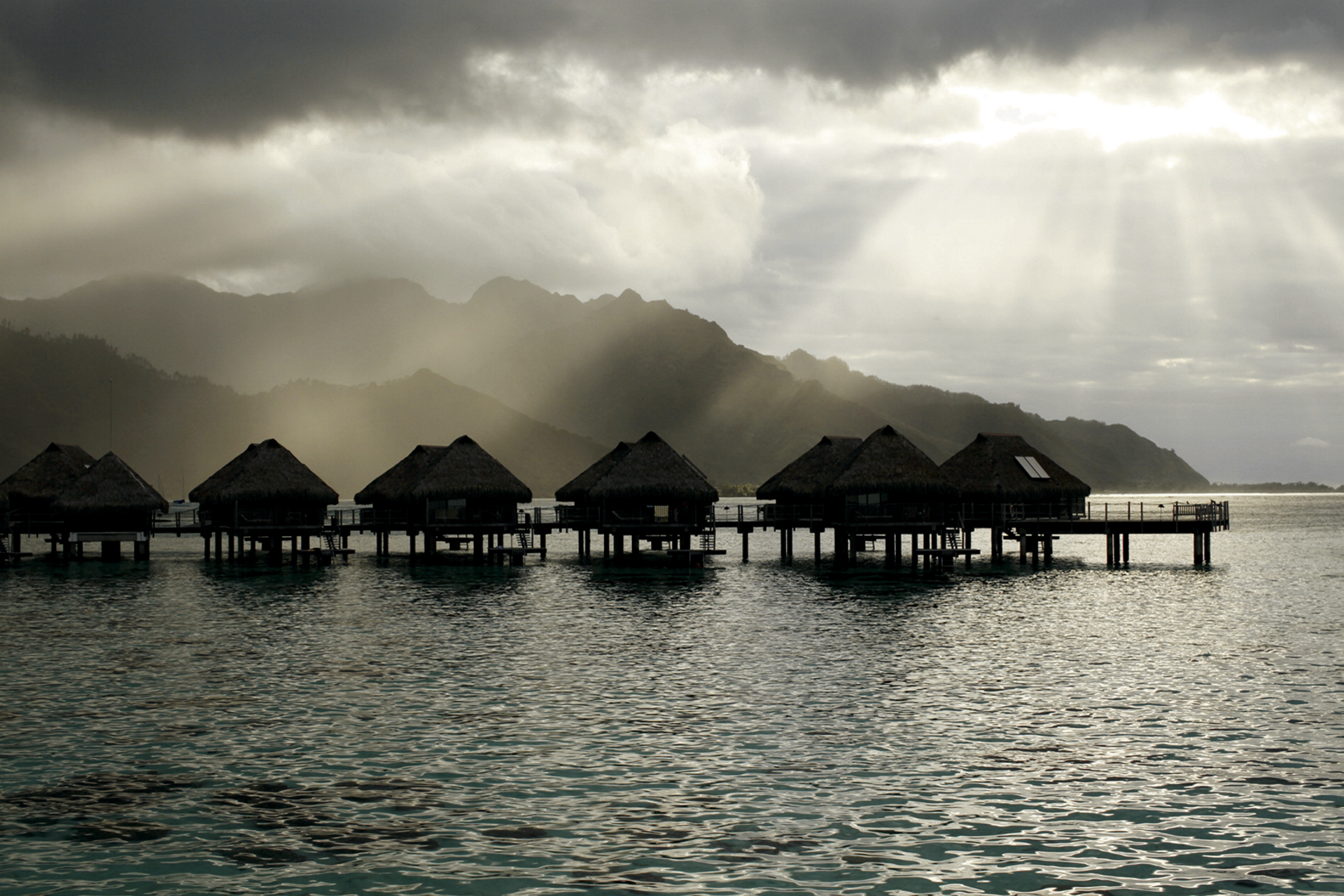 An der Nordküste der Insel, zwischen Opunohu und Cook Bay, umgeben von tropischen Gärten, direkt am weißen Sandstrand, 20 min vom Flughafen. Die schöne Lagune mit glasklarem Wasser ist ein riesiges Aquarium.