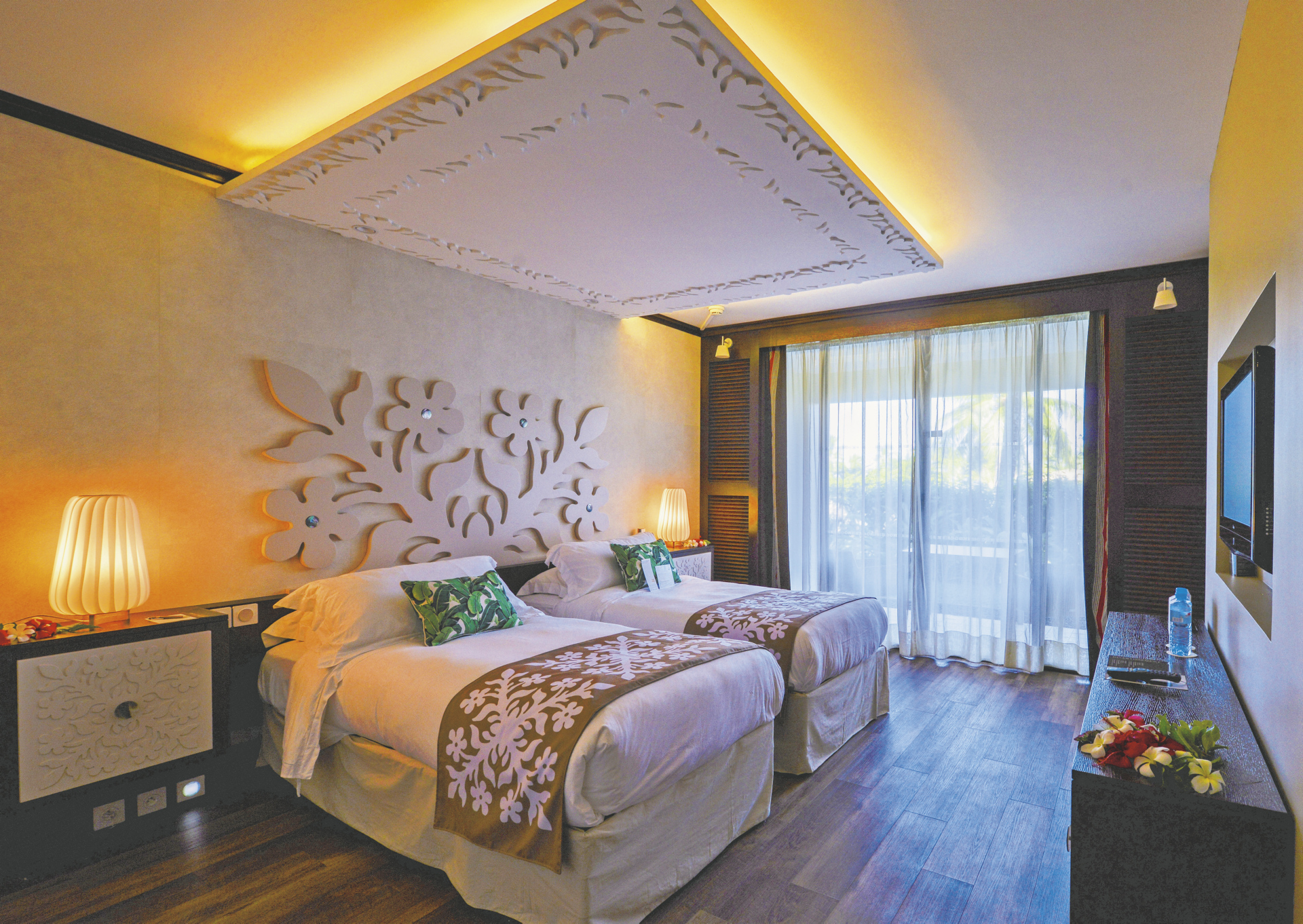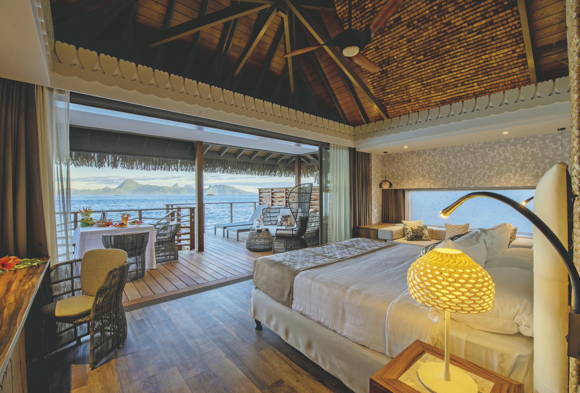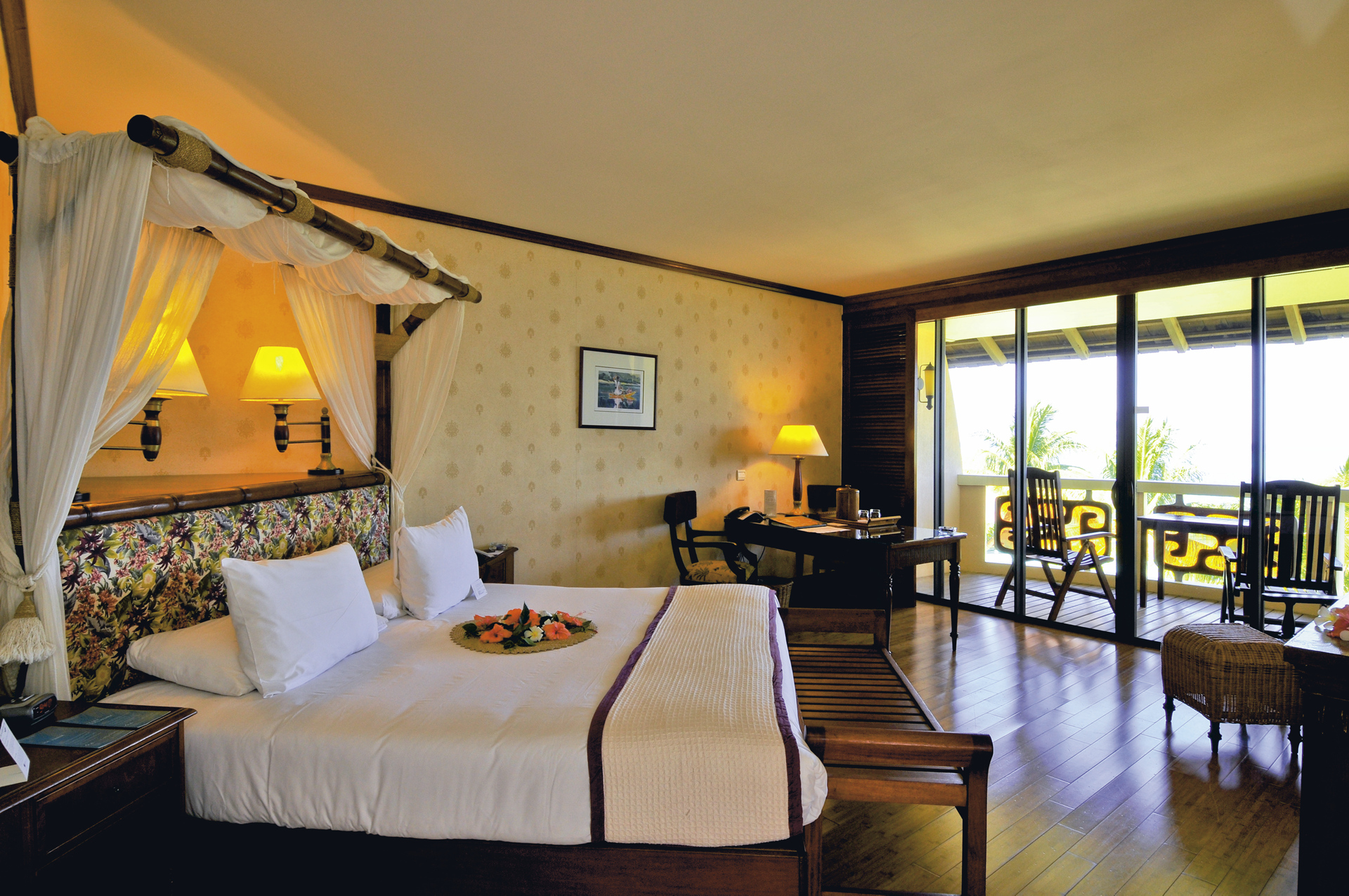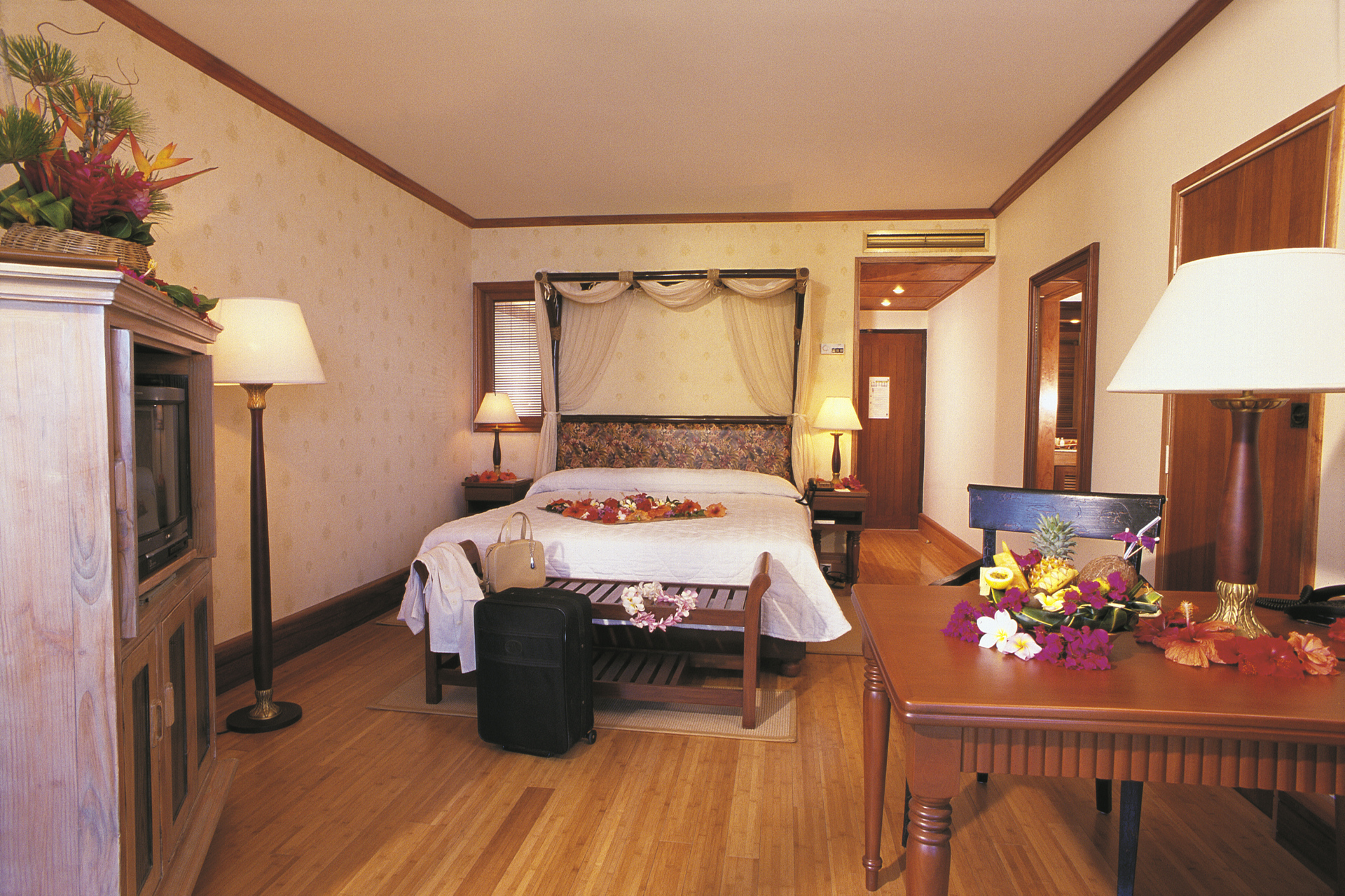Die Zimmer im Hauptgebäude bieten Garten- oder Meerblick und sind frisch renoviert. Die Overwater-Bungalows Motu wurden komplett neu aufgebaut und bieten frisches, polynesisches Dekor und Zugang zum Meer. Die 246 Zimmer und Bungalows verfügen über Terrasse oder Balkon, Tee-/Kaffeezubereiter, Minibar, Telefon, TV, Klimaanlage, Safe, Bügeleisen, WLAN kostenlos, Dusche und Fön.
