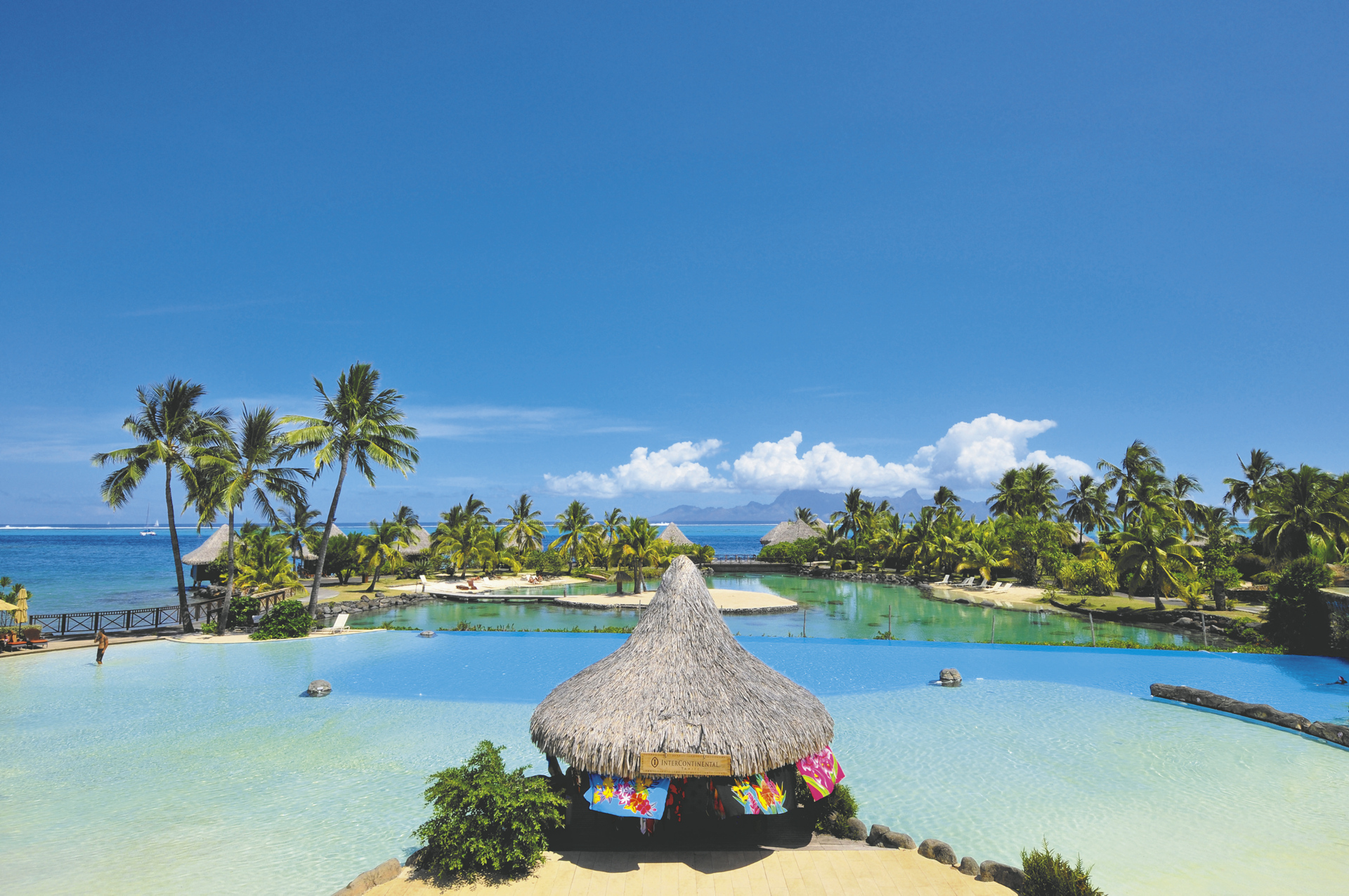Große internationale Resortanlage mit Blick auf Moorea und allen Annehmlichkeiten.