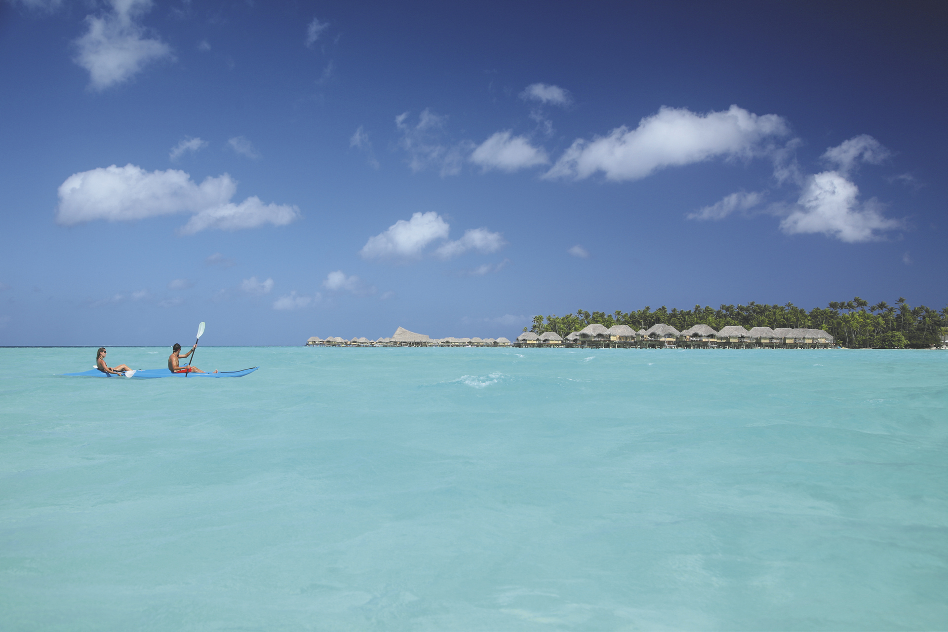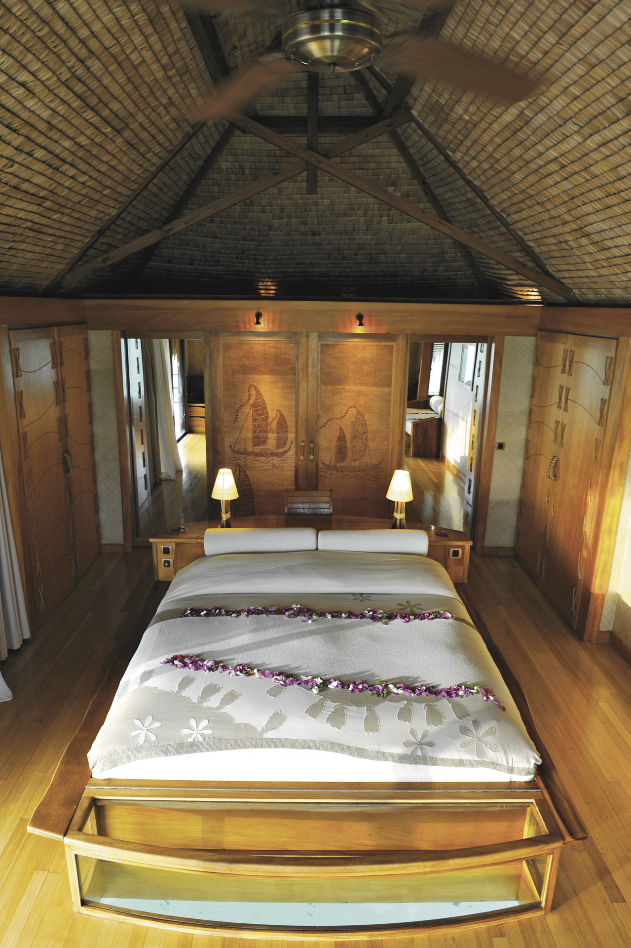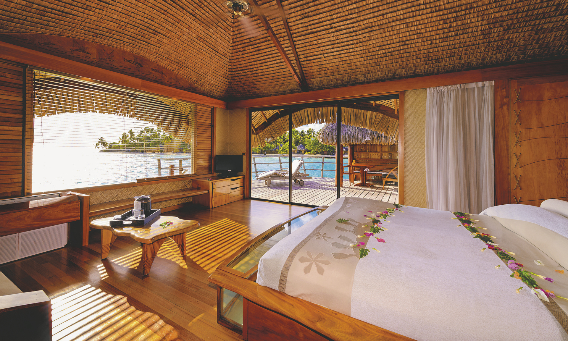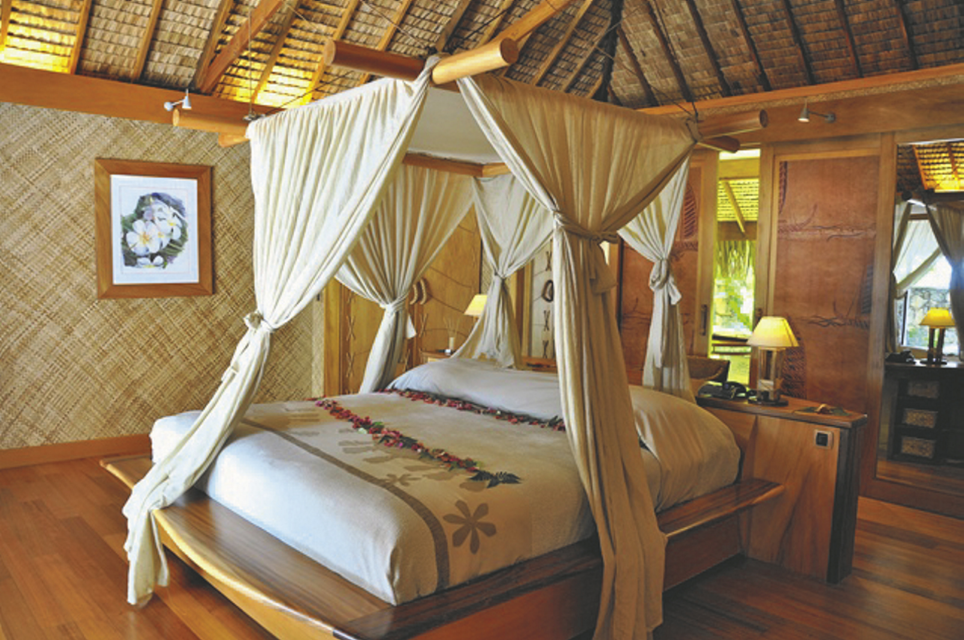 58 großzügige Villen und Suiten polynesisch schlicht und schön ausgestattet am Strand oder über der blauen Lagune mit Lounge, Terrasse, Klimaanlage, Ventilator, TV/DVD, Telefon, kleinem Kühlschrank, Tee-/Kaffeezubereiter und Safe sowie Bad mit Dusche, Badewanne und Fön stehen den Gästen zur Verfügung. Die Strandvillen sind sehr geräumig und verfügen über Garten mit privatem Pool. Die Overwater-Suiten bieten einen tollen Blick, Zugang zur Lagune und einen Glasbodentisch.