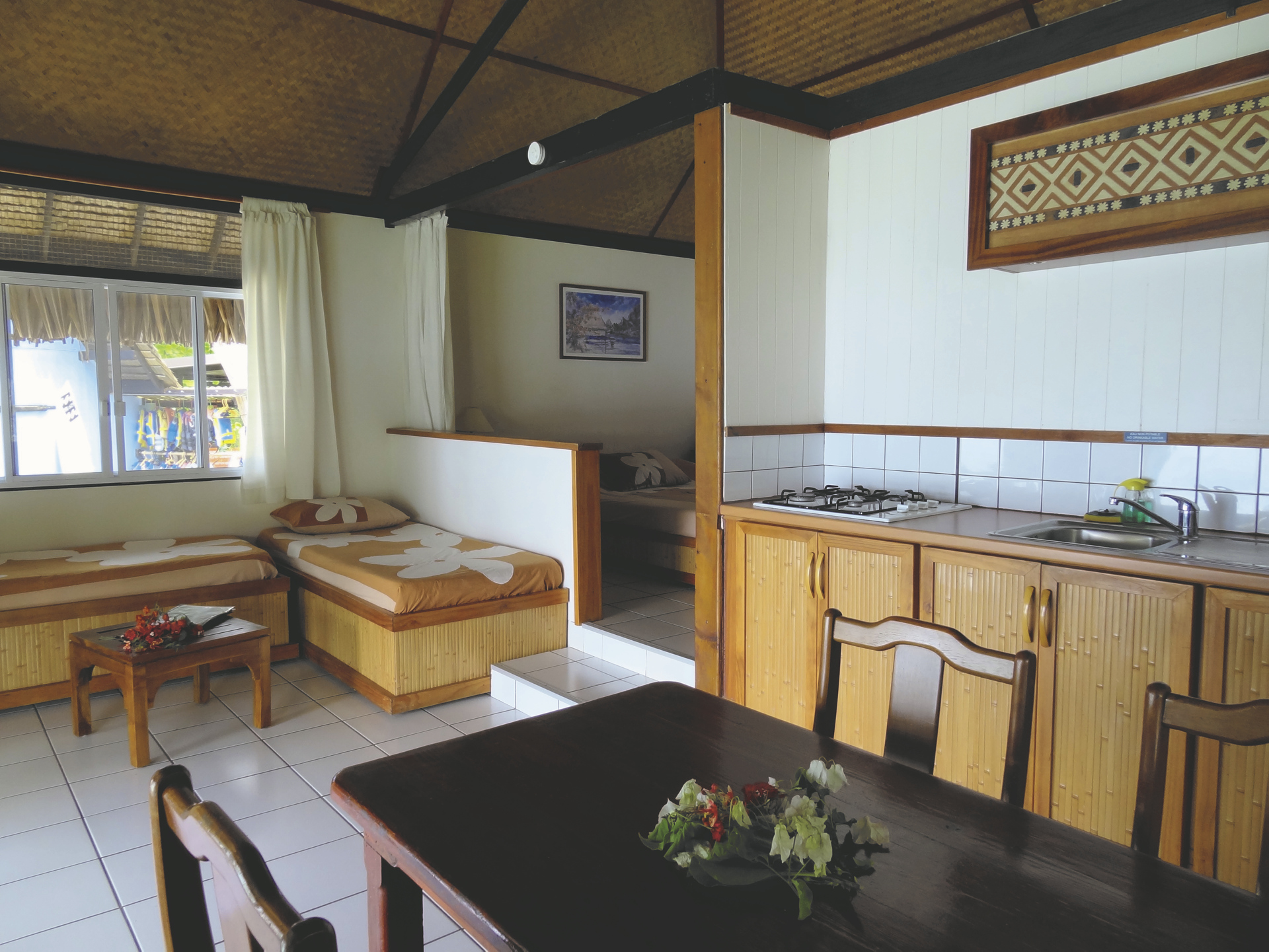 Direkt an einem weißen Sandstrand an der Nordwestküste von Moorea, 45 min vom Flughafen.