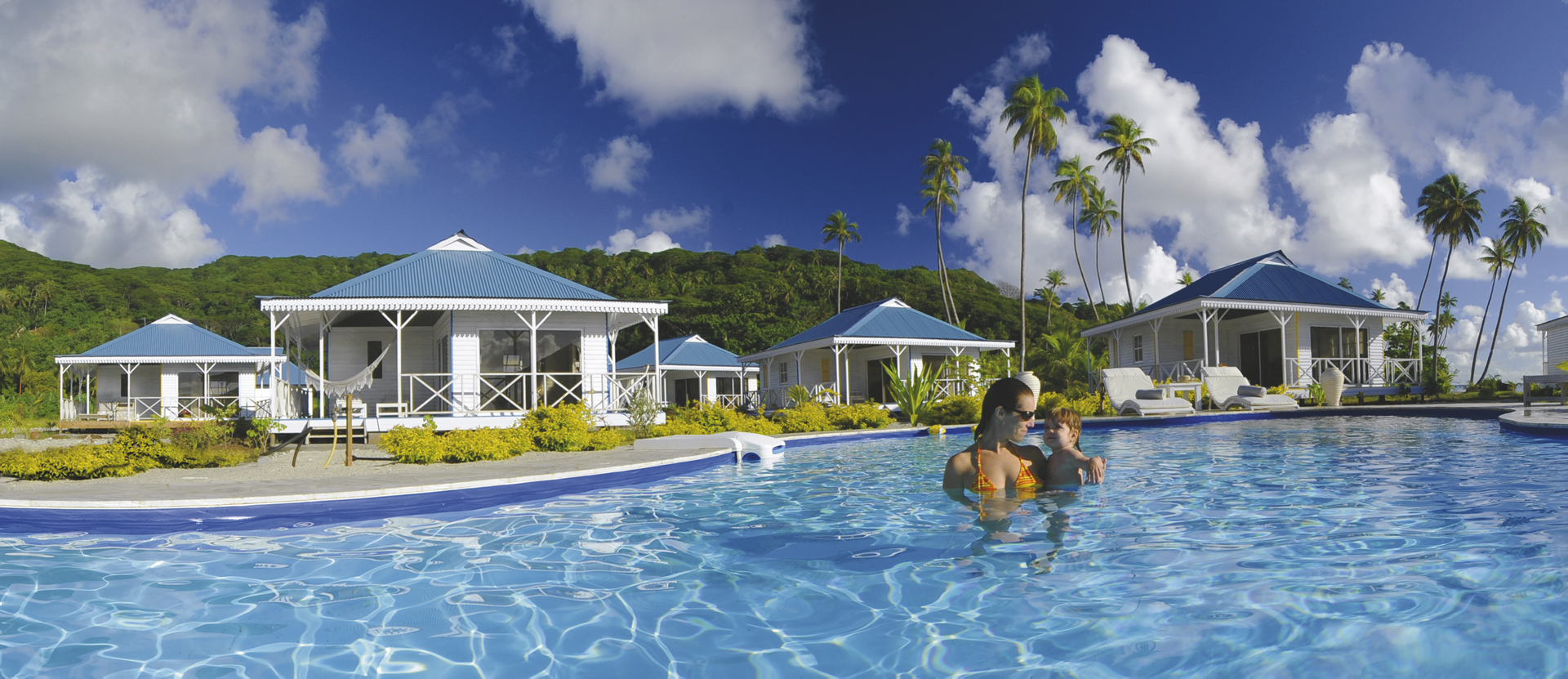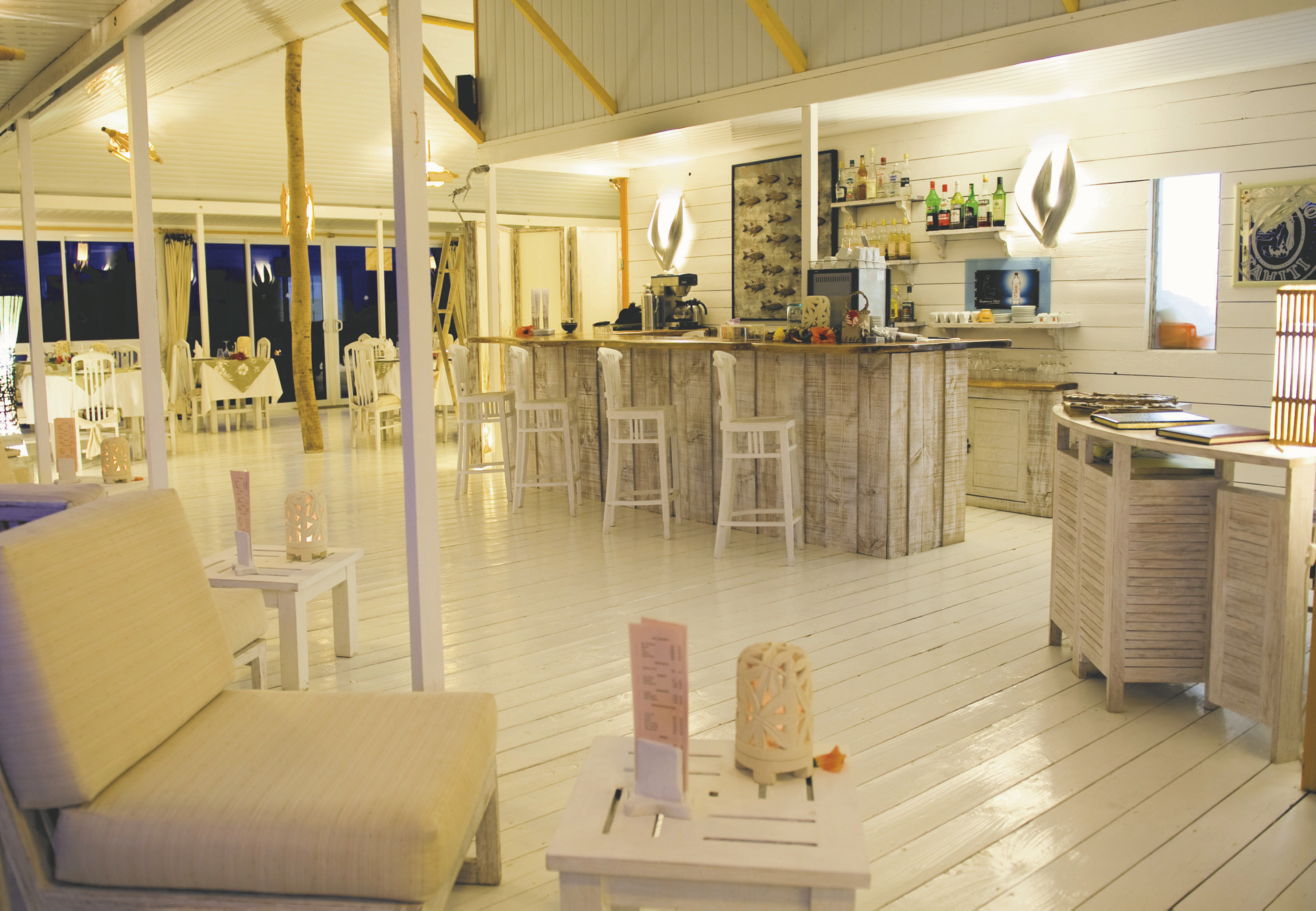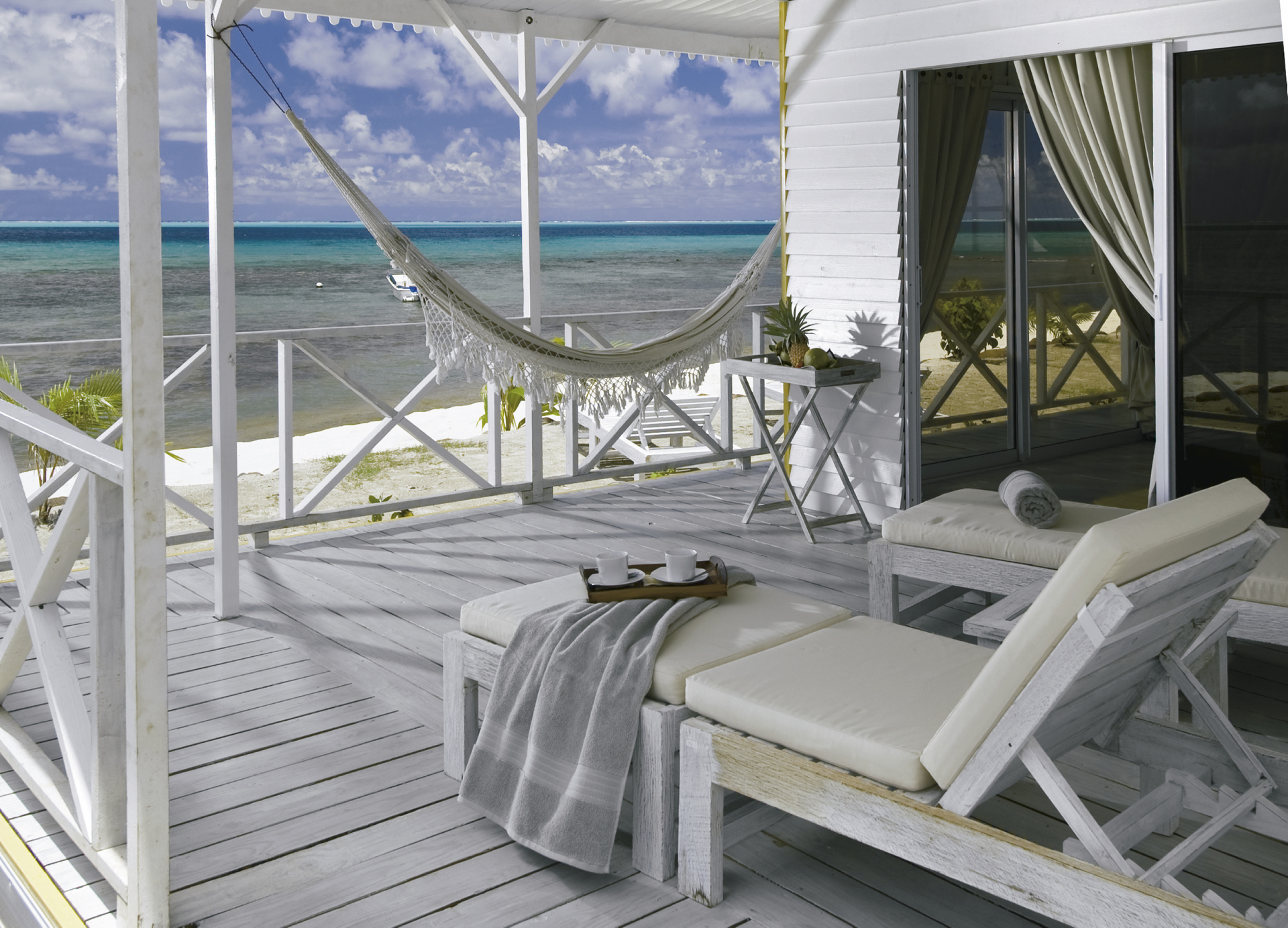 Restaurant und Bar mit Meerblick bieten abwechslungsreiche Küche. Kostenlos Schnorcheln, Angeln, Kajak, (Ausleger-)Kanu, Bibliothek, WLAN, Pool und Ausflüge zur Vogelinsel, zum Korallengarten, zu Fischerdorf und Handwerksmarkt in Uturoa.