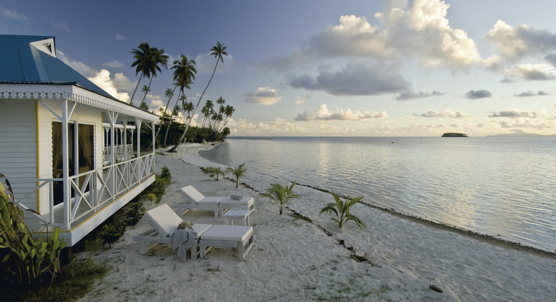 Klein, ruhig, idyllisch und mit Blick auf den Ozean und über Huahine.