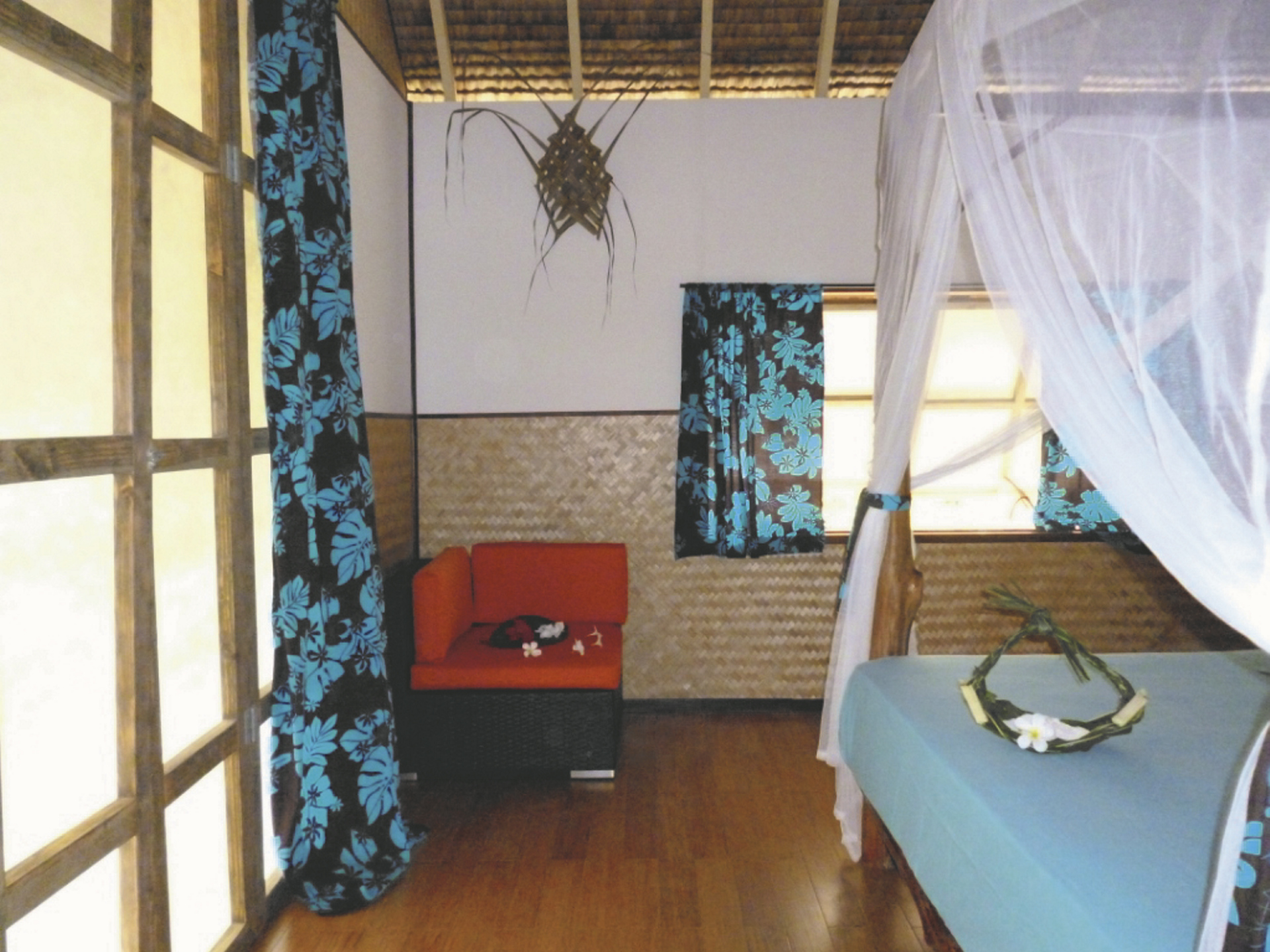 Die kleine Pension versorgt sich selbst mit Strom und heißem Wasser. Im Restaurant werden Ihnen lokale Gerichte mit Fisch serviert. Schnorchelausrüstung und Kajaks sind gratis, Windsurfen gegen Gebühr. Es gibt kein Internet.
