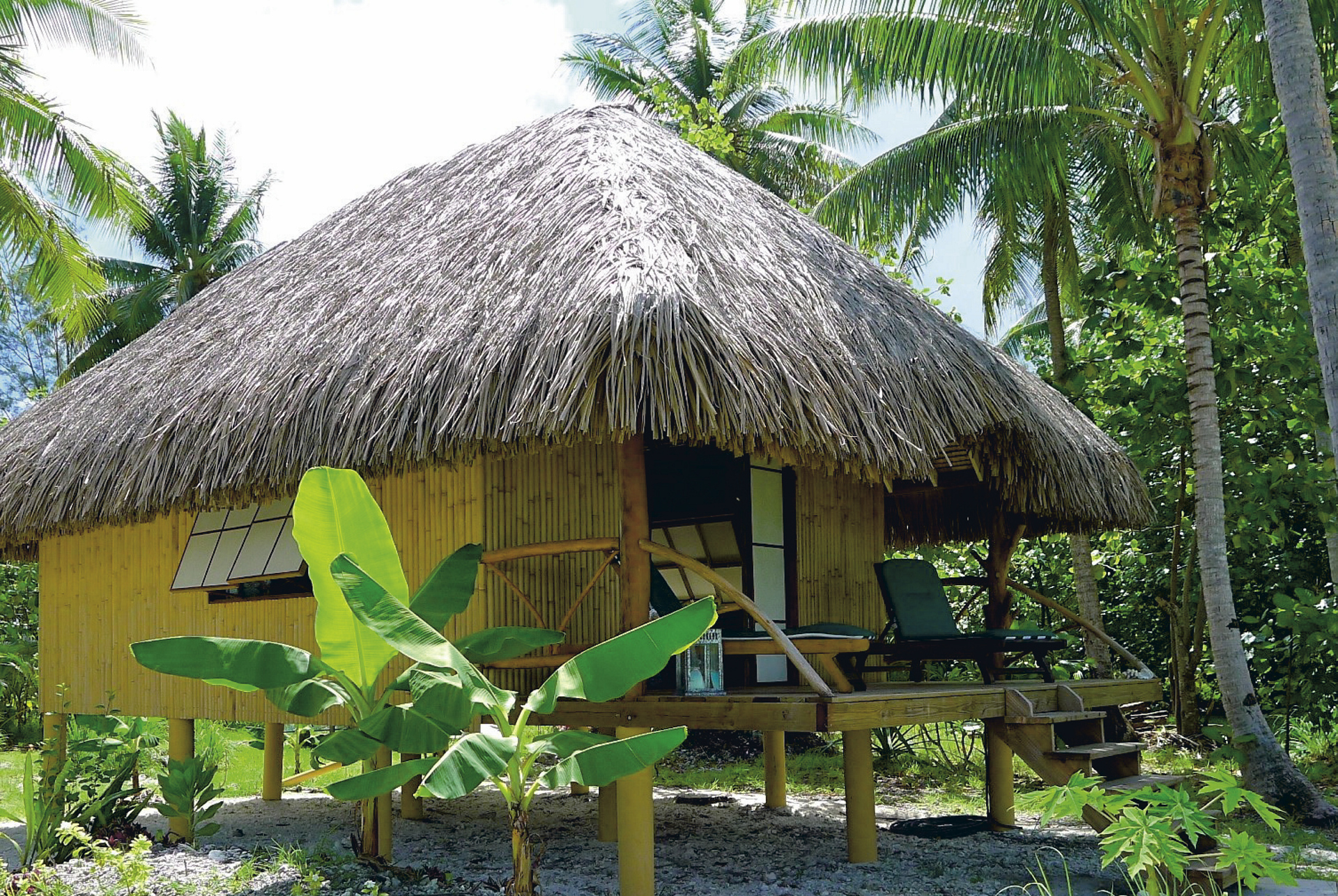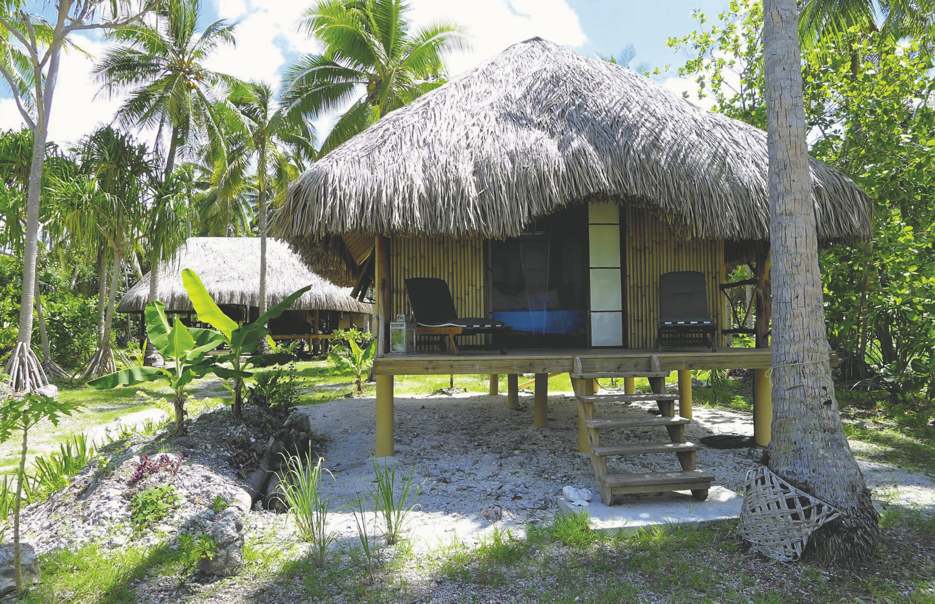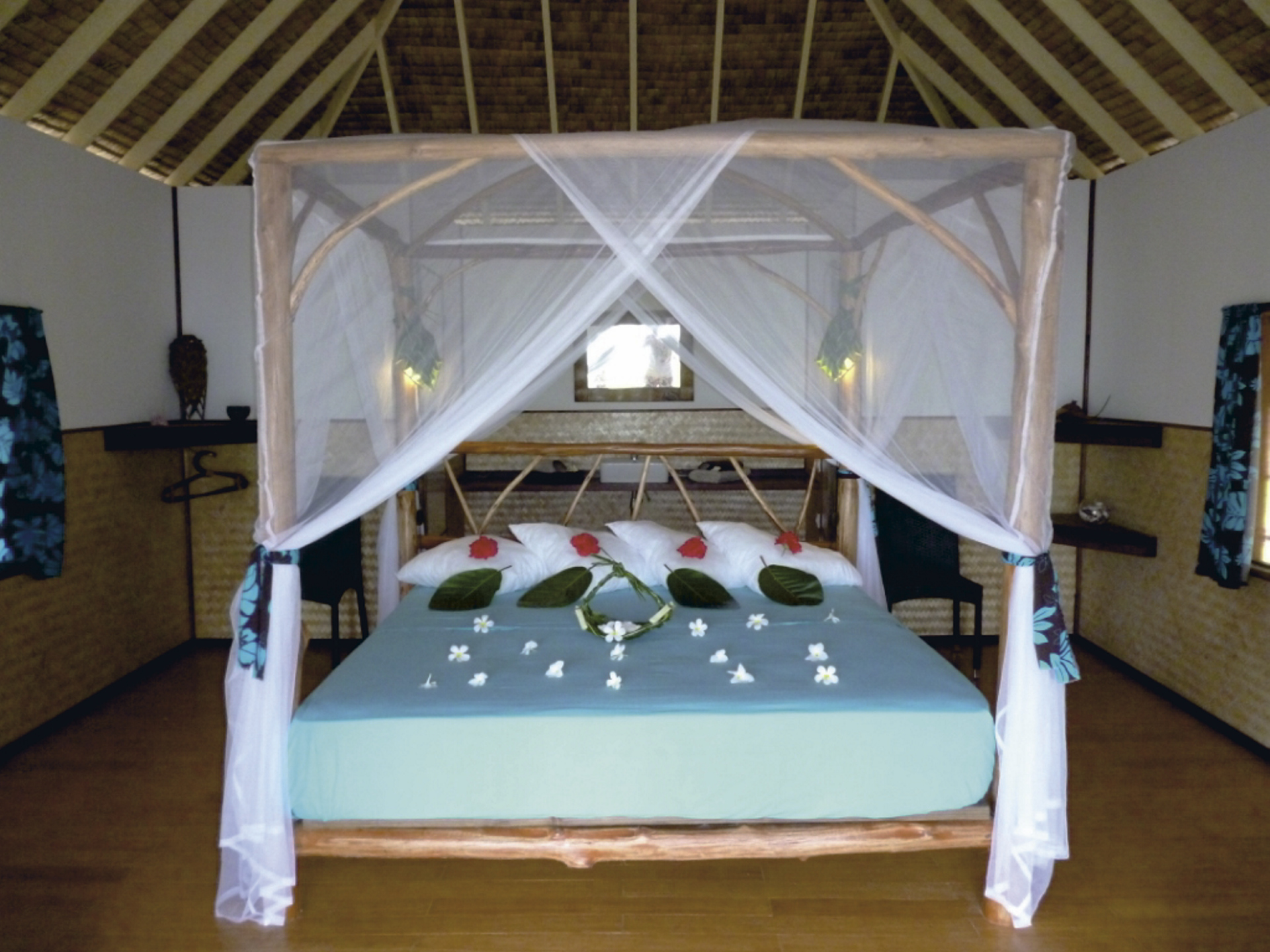 Die 3 modern eingerichteten Bungalows mit Terrasse sind aus traditionellen Materialien erbaut und stehen auf Stelzen. Sie verfügen über privates Bad mit Warmwasser (Solarenergie), Ventilator und Moskitonetz.