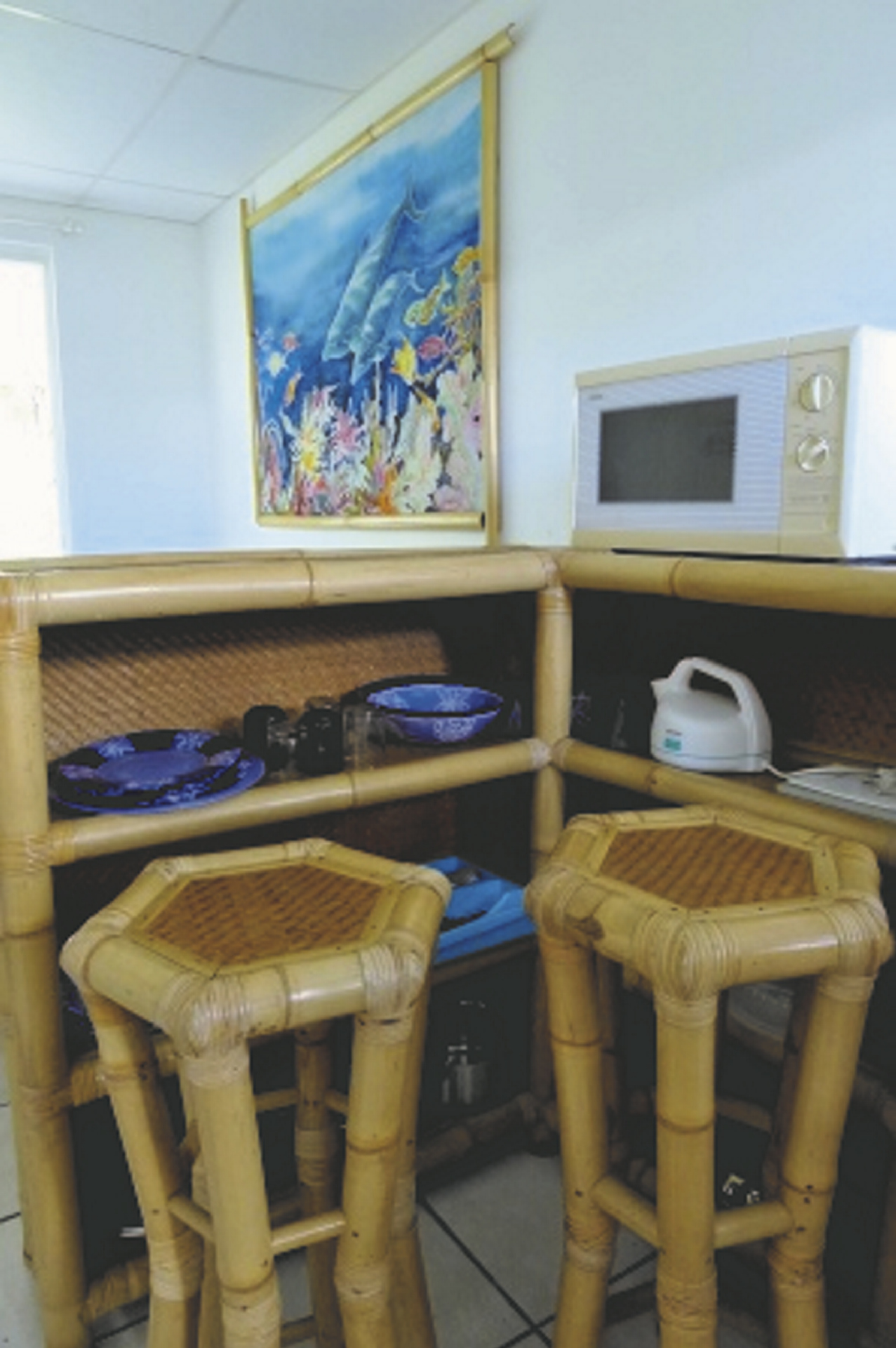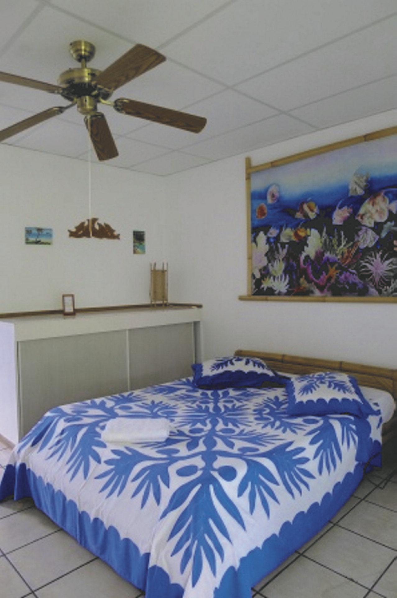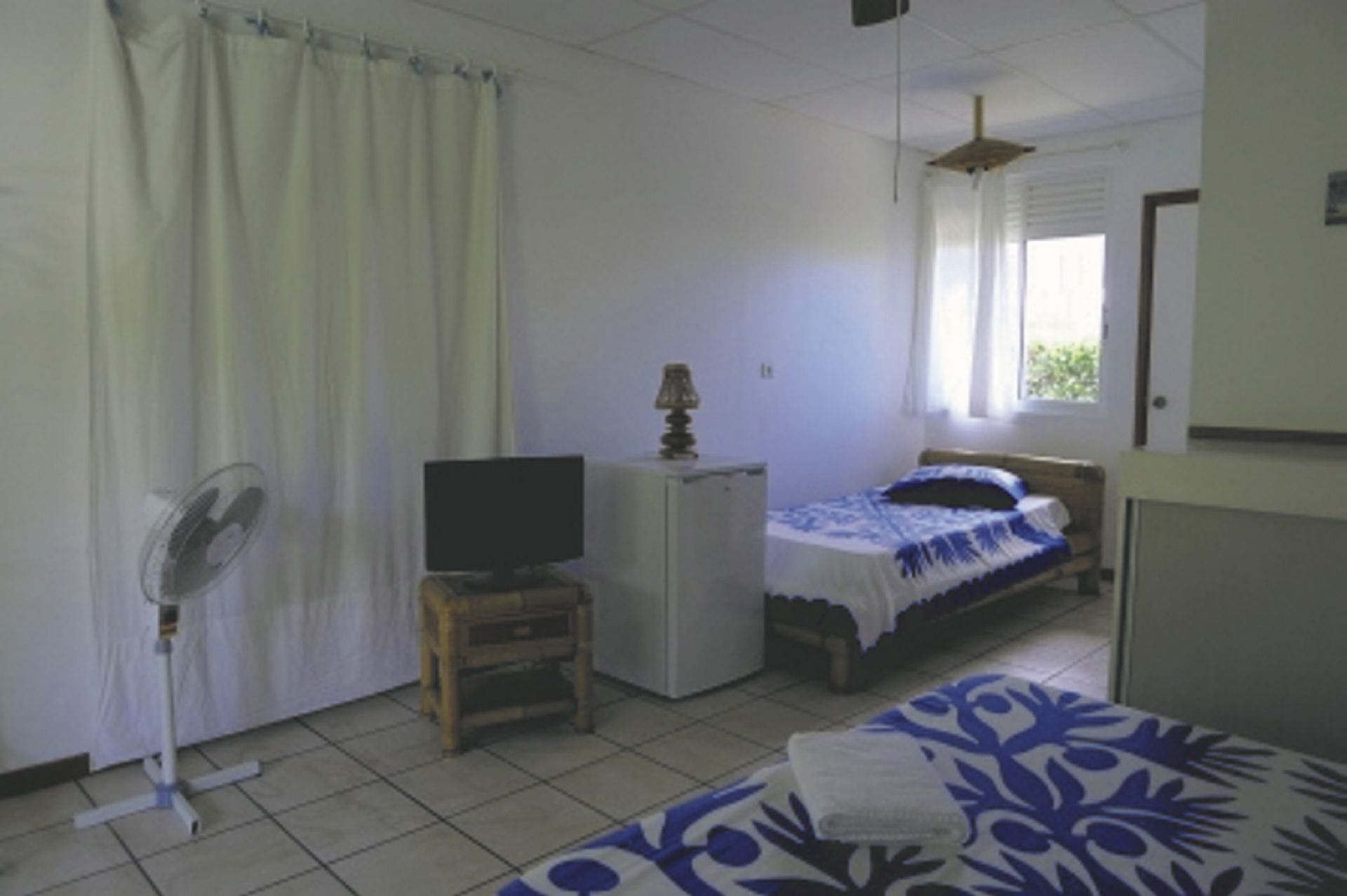 2 geräumige Zimmer und 4 Studios mit Terrasse, polynesisch-modern dekoriert, klimatisiert, mit Ventilator, Kühlschrank, TV, Safe und privatem Bad. Studios inklusive Küchenzeile mit Mikrowelle und Tee-/Kaffeezubereiter.