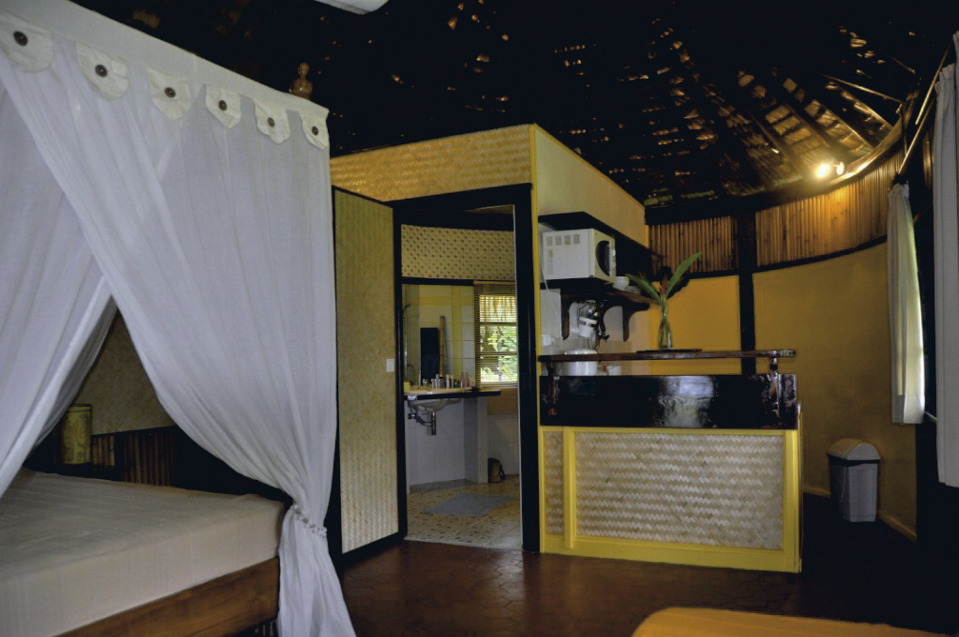 Die kleine Anlage lädt zum Erholen und Schnorcheln ein. Der Garten mit seiner tropischen Flora lädt zum Entspannen ein, vom Steg aus geniesst man herrliche Sonnenuntergänge. Die Anlage wird von sehr aufmerksamen und hilfsbereiten Gastleuten geführt. Kostenlos sind Schnorchelausrüstung, Kanu, Kajak, Fahrräder, Bibliothek und Boule. WLAN kostenlos. Ausflüge werden gerne organisiert. Frühstück wird auf Ihrer Terrasse serviert. Kein Restaurant, aber Catering am Abend möglich.
