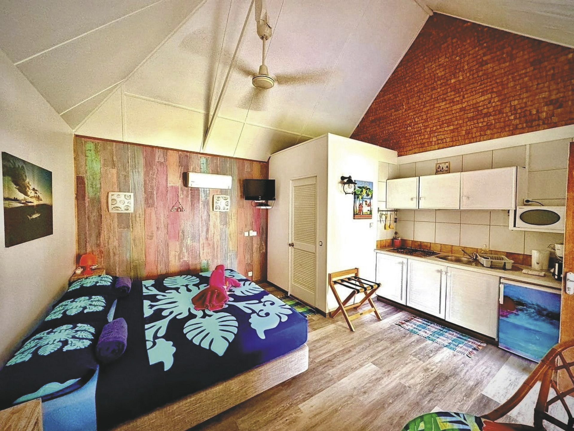 9 geräumige Studios und Bungalows aus Holz, alle mit komfortablen Betten, Terrasse, Küche, Ventilator, TV und Safe. Alle ausgeschriebenen Wohneinheiten sind zusätzlich klimatisiert.