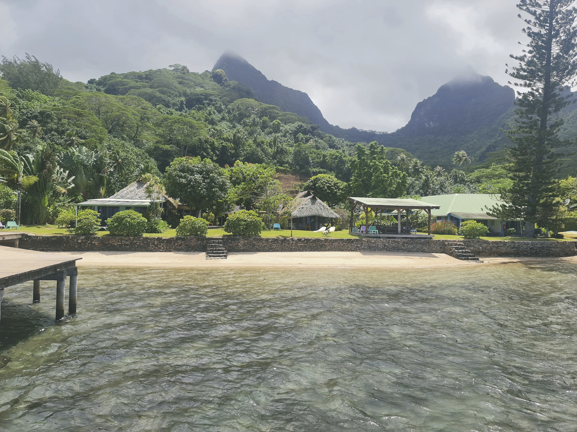 Die Pension liegt 50 min vom Flughafen entfernt in Haapiti und bei den Sand- und Surfstränden von Moorea. Inder nähren Umgebung befinden sich zahlreiche Cafés und Restaurants. Die Bungalows sind alle nur wenige Meter vom Strand entfernt.