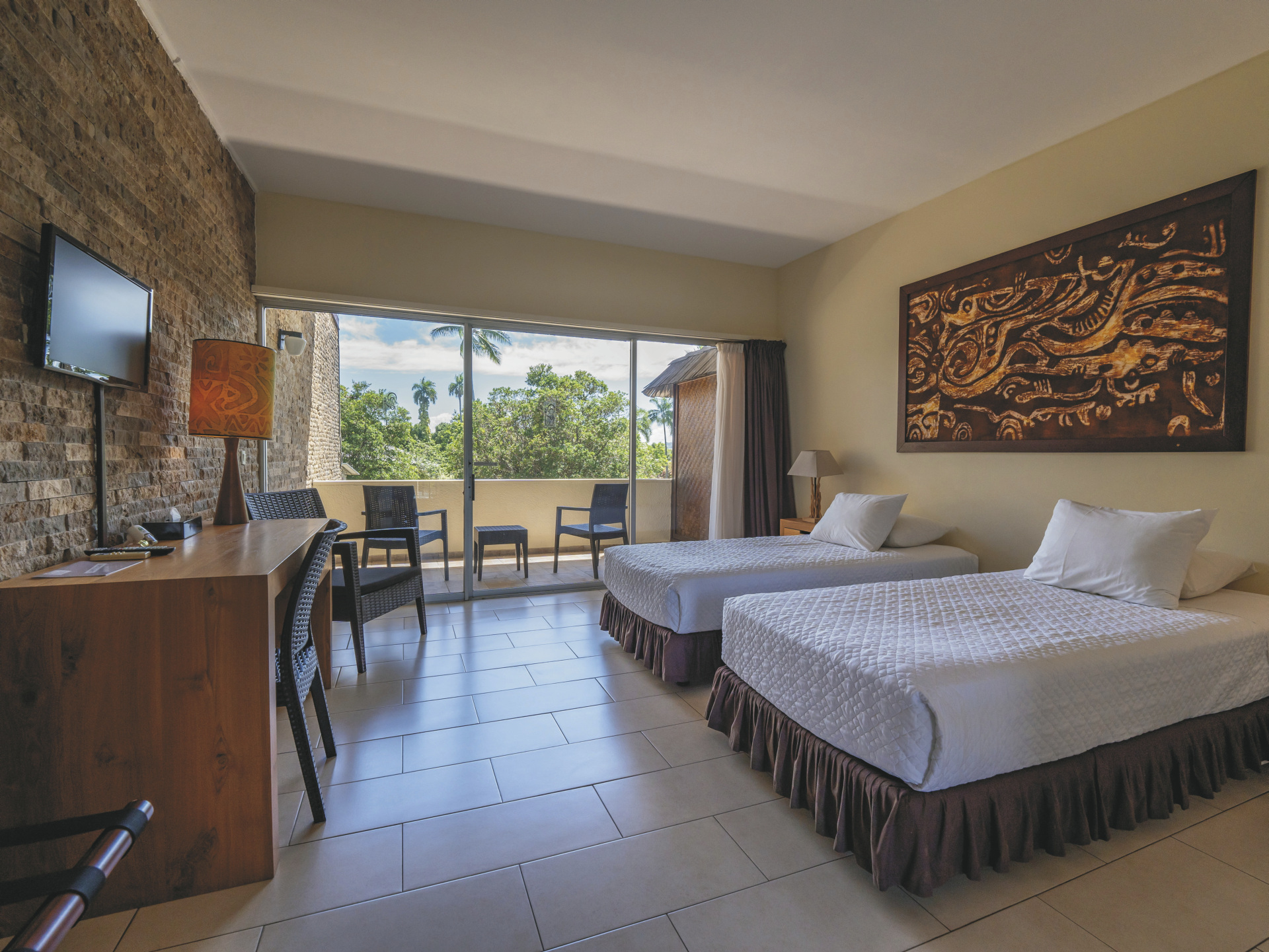 Die Zimmer sind geräumig, klimatisiert, verfügen über TV., Minikühlschrank, Safe, Tee-/Kaffeebereiter, möblierte Terrasse oder Balkon mit Blick in den Garten. Die Studios verfügen zusätzlich über eine Kochnische mit Kühlschrank, Geschirr und Besteck. Die Suite, ideal für Familien, verfügt über mehrere Betten und bietet Platz für bis zu 4 Personen.