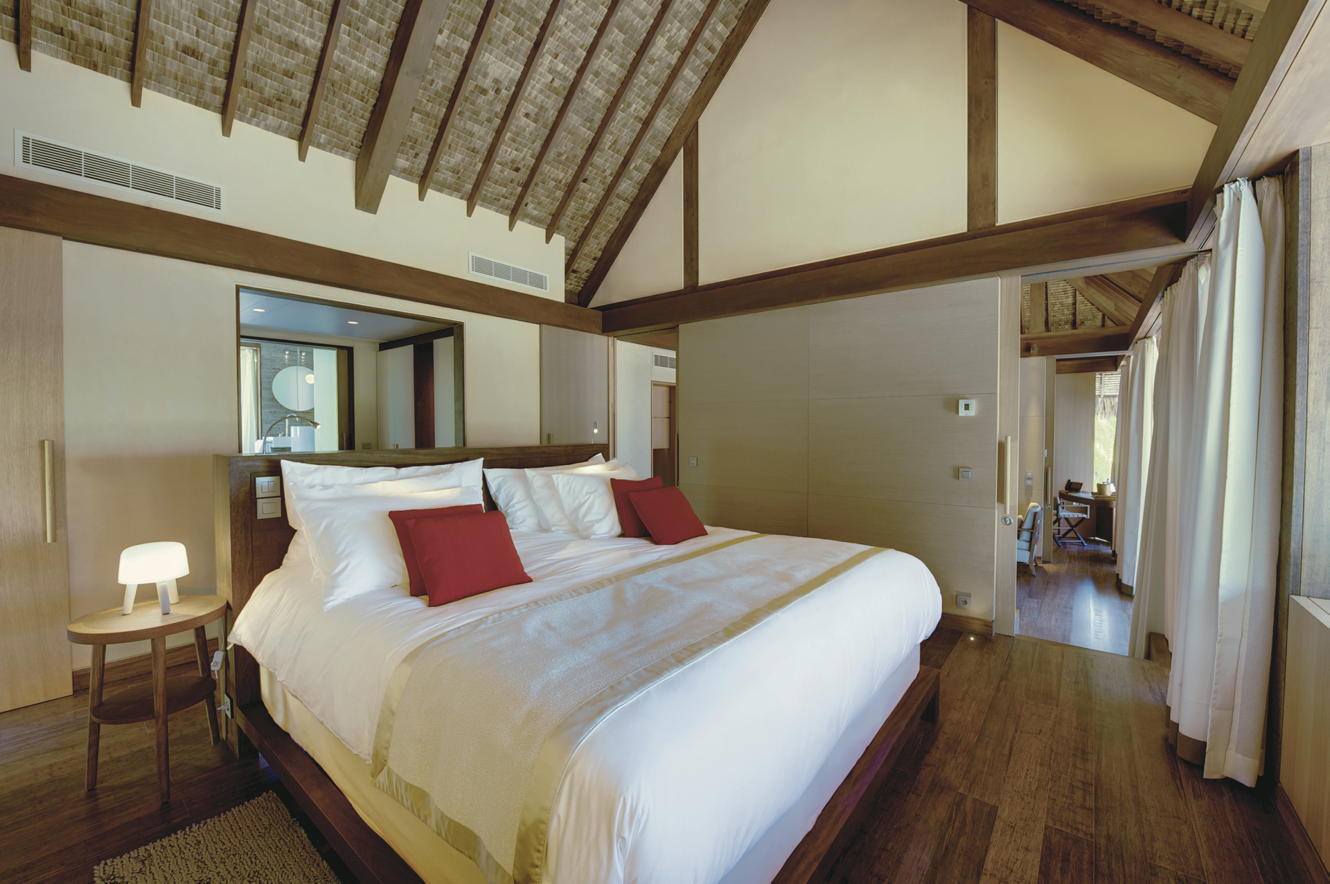 Ihre 1-Schlafzimmer-Strandvilla mit Klimaanlage ist 96 m², die Veranda 56 m² und der private Pool 10 m² groß. Das Wohnzimmer ist ausgestattet mit Sofa und Stühlen sowie Telefon, TV,/DVD und Filmauswahl. Safe, Espresso-Maschine und Minibar sind vorhanden. Neben dem Schlafzimmer mit Meerblick liegt eine Ankleide. Zusätzlich zum Bad mit Dusche, WC gibt es eine Außenbadewanne. Ein privater Strandzugang komplettieren das Ensemble.