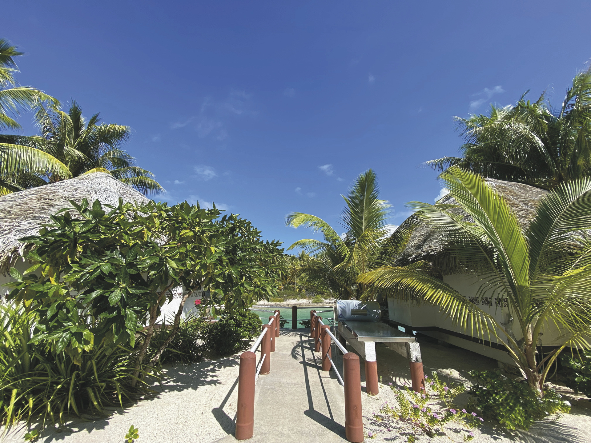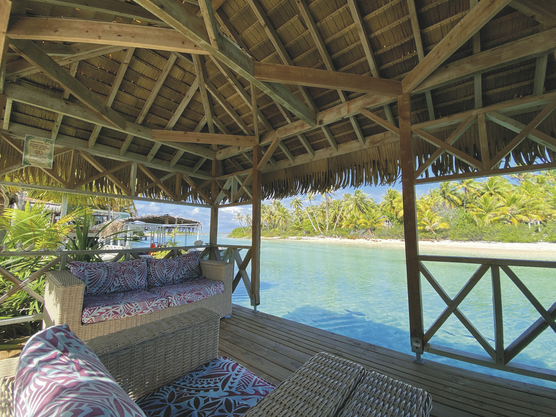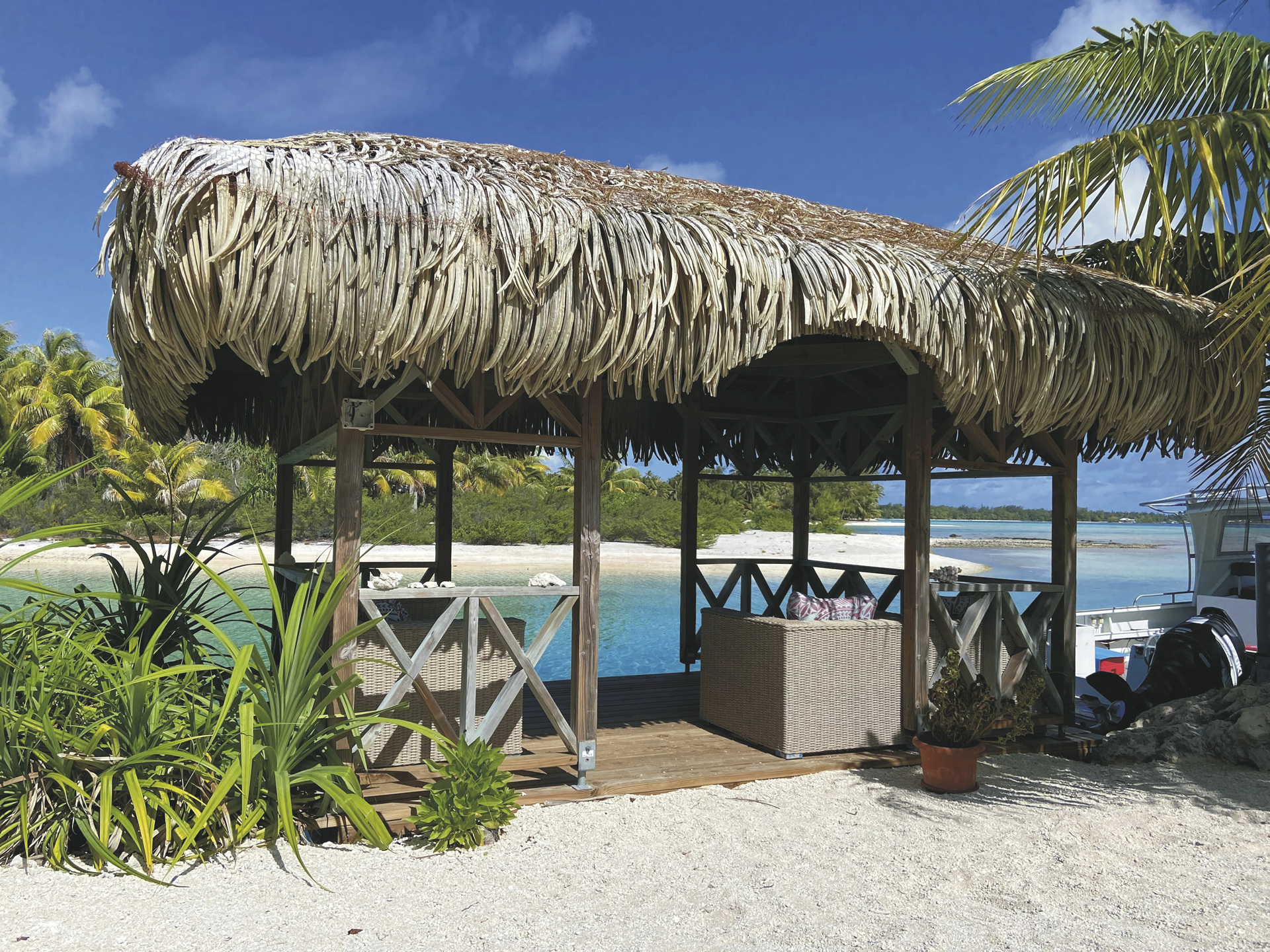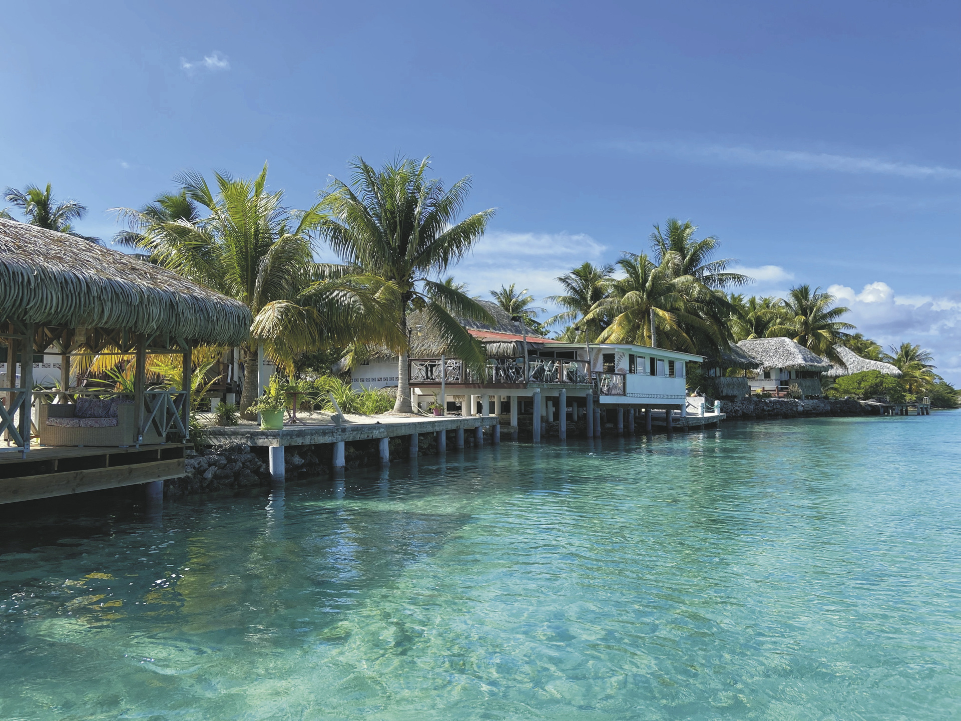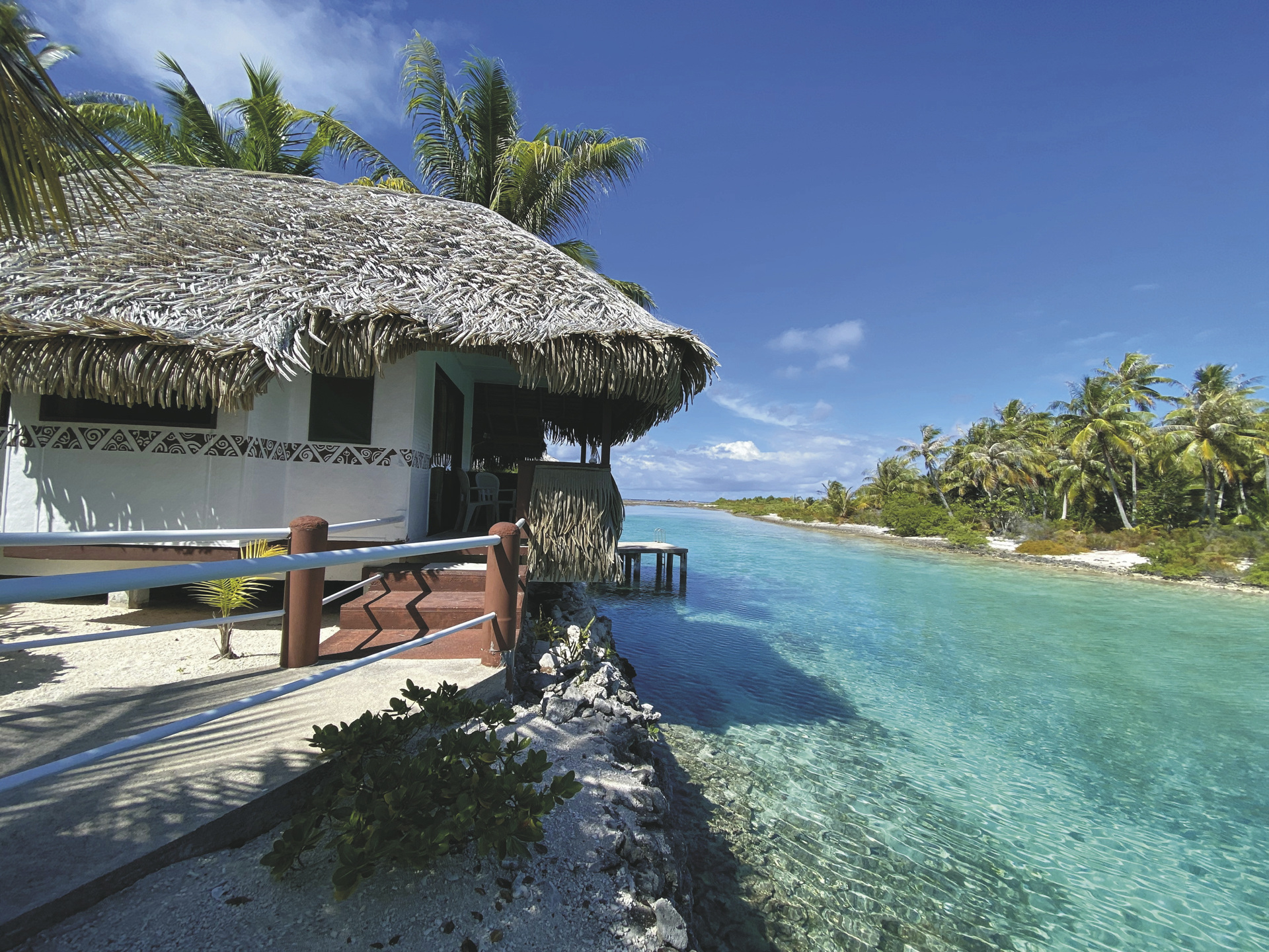 Die Pension liegt auf einem Motu (Sandinsel mit Palmen!), ca. 15 Minuten Bootsfahrt vom Flughafen entfernt.