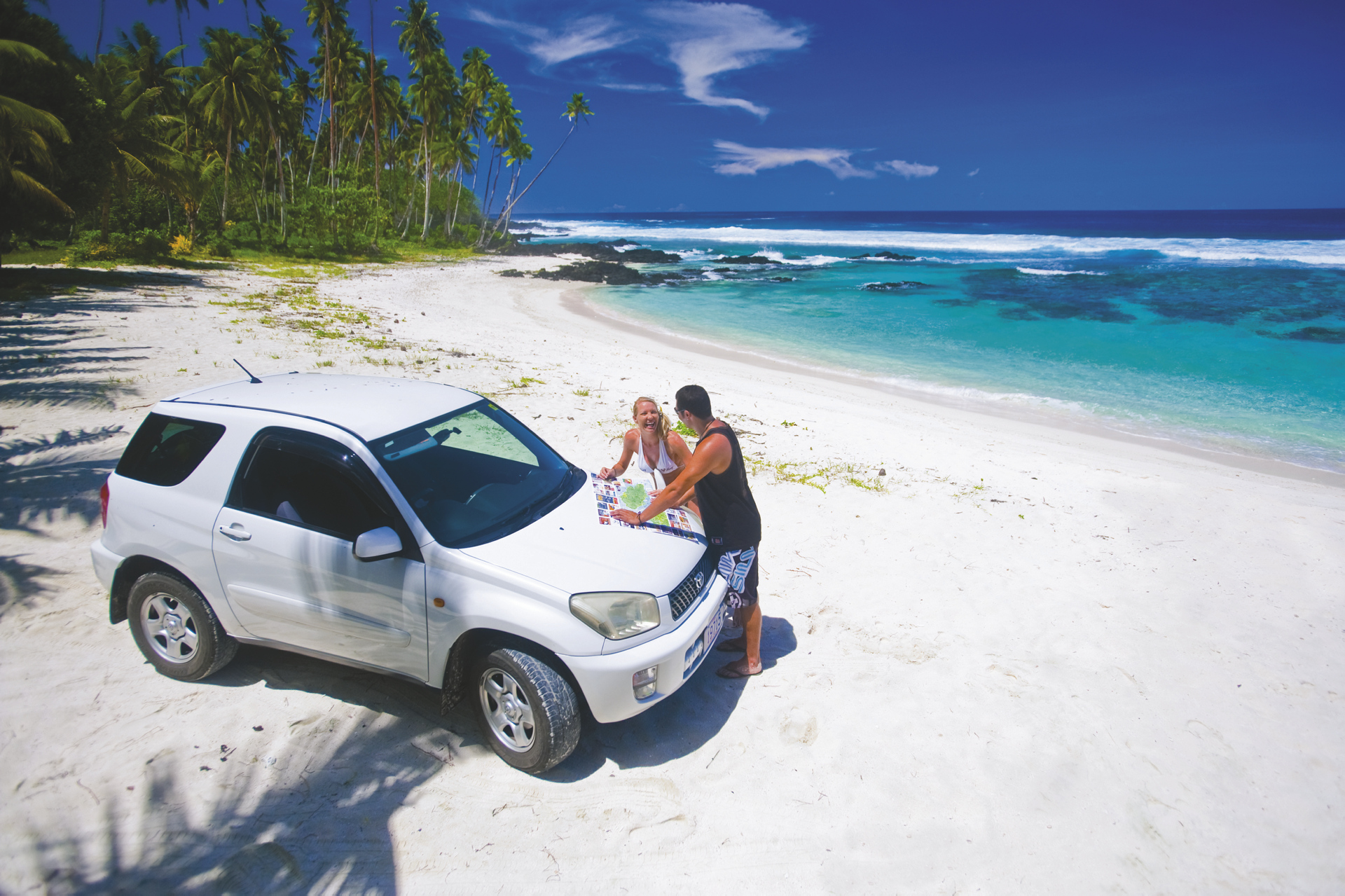 Blue Pacific Mietwagen, bei Übernahme muss eine Kaution von SAT 500 hinterlegt werden. Im Mietwagenpreis eingeschl. CDW mit SAT 3000 Selbstbehalt. Diese Inselkomination kann auch als Rundreise mit geführten Ausflügen angeboten werden.