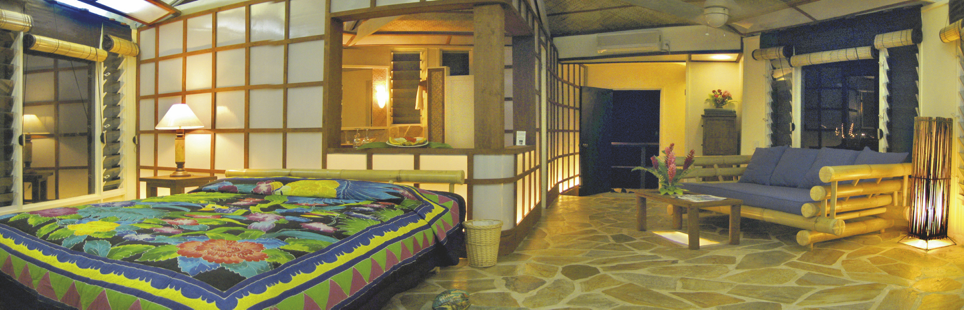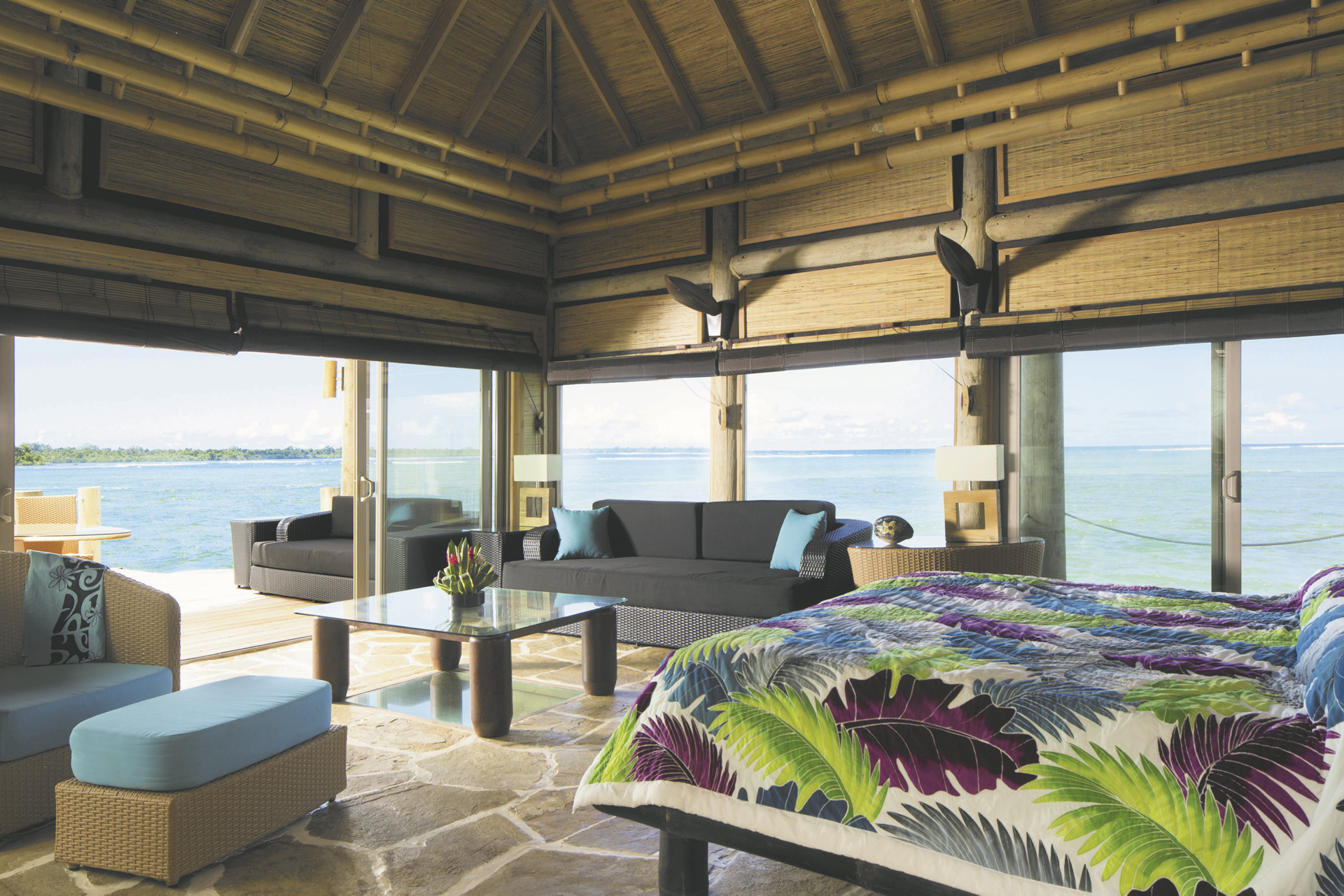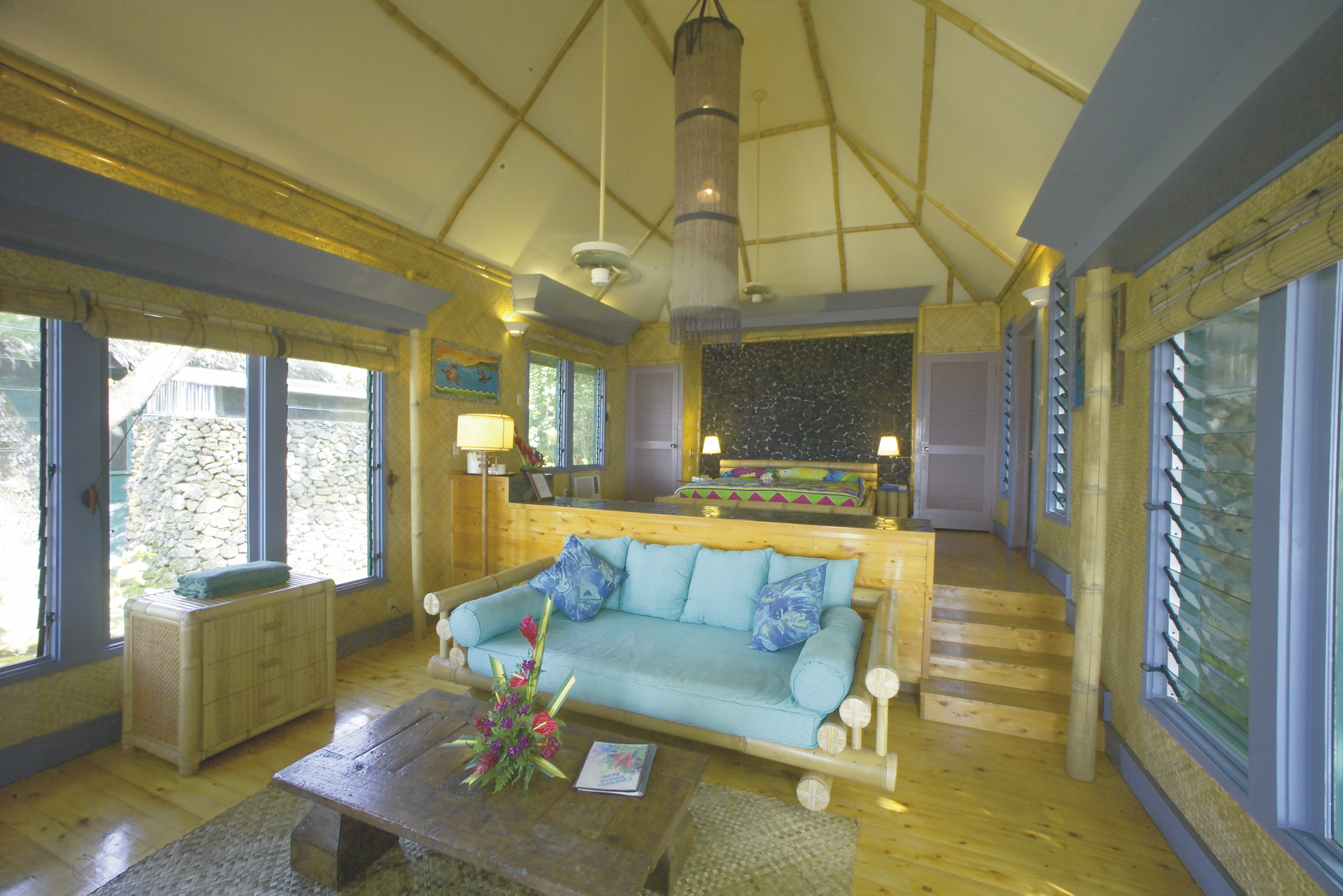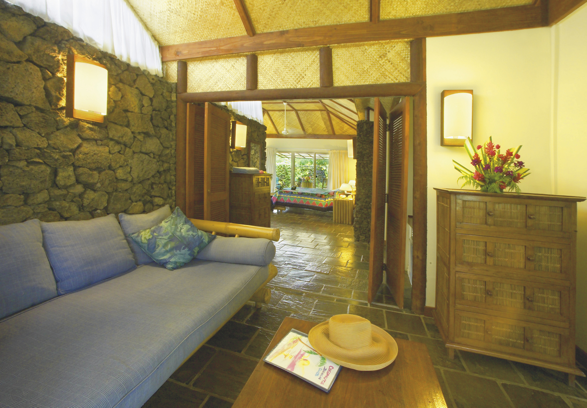 Alle Suiten und Bungalows mit Terrasse oder Balkon, Klimaanlage, Ventilator, kleinem Kühlschrank, Tee-/Kaffeezubereiter, Safe und großzügigem, gemauertem Bad mit Fön, Internetanschluß. Die Suiten sind in einem typisch samoanischen, zweistöckigen Gebäude. Die Strandbungalows liegen unweit vom Wasser. 6 neue Overwater-Bungalows mit Glasboden sorgen für besonderes Südsee-Flair.