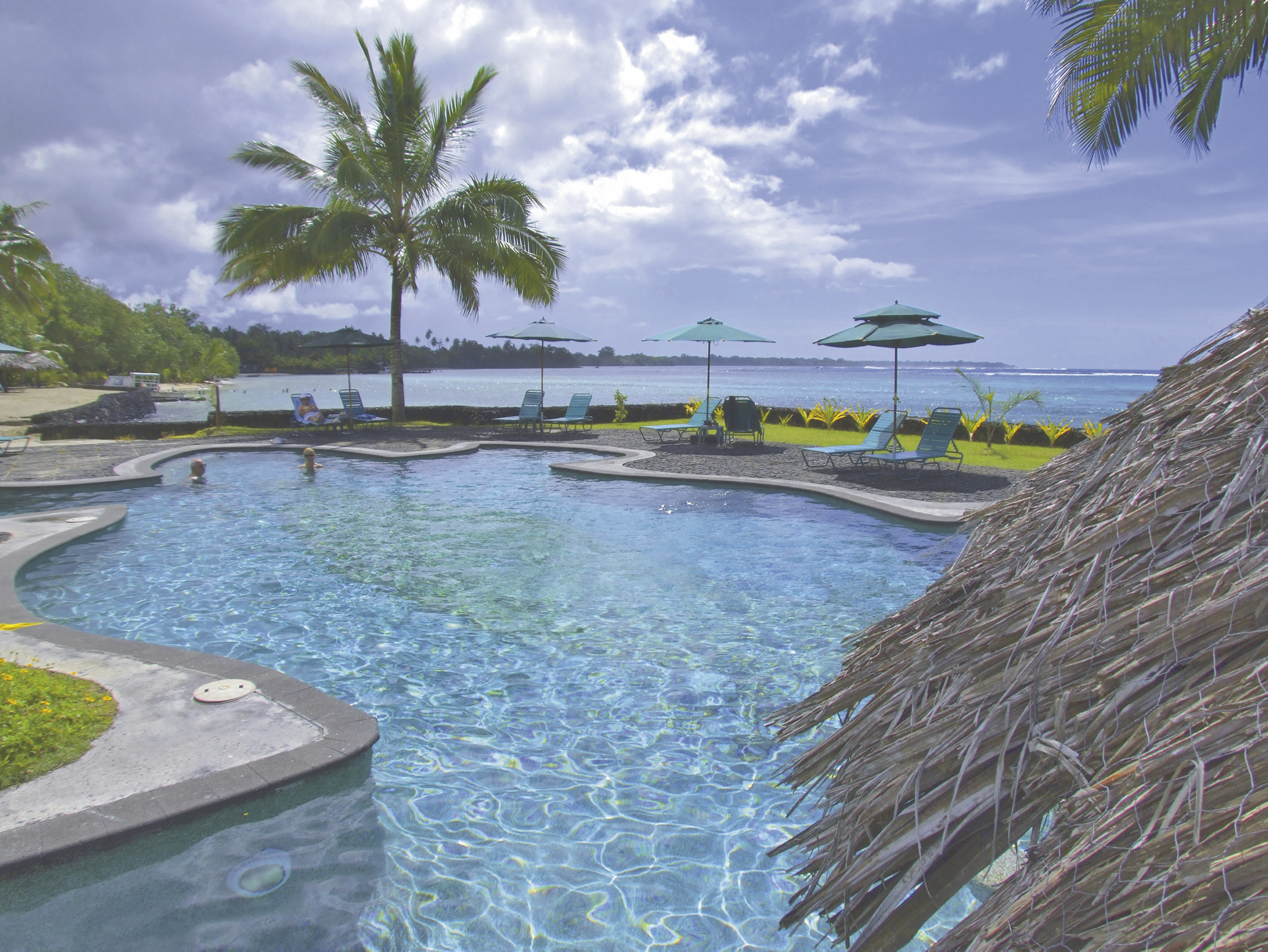 In seinem unverwechselbaren, rustikalen, samoanischen Stil bietet das Resort besten Komfort und exquisite Küche in entspannter Südsee-Atmosphäre. Es gibt einen Pool mit Bar. Das moderne Coco's Spa bietet Massagen an. Das Resort ist ideal zum Schnorcheln, Kajak fahren, Schwimmen und Windsurfen, probieren Sie mal ein SUP. Samstags ist samoanischer Tag im Resort. Gratis Bustickets nach Apia (Mo-Sa) und alternativ zum Frühstück täglich gefüllte Minibar.